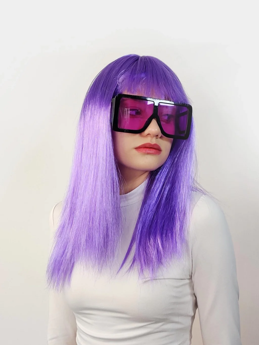 BUĞZ Lila Renk Uzun Düz Parti Peruğu