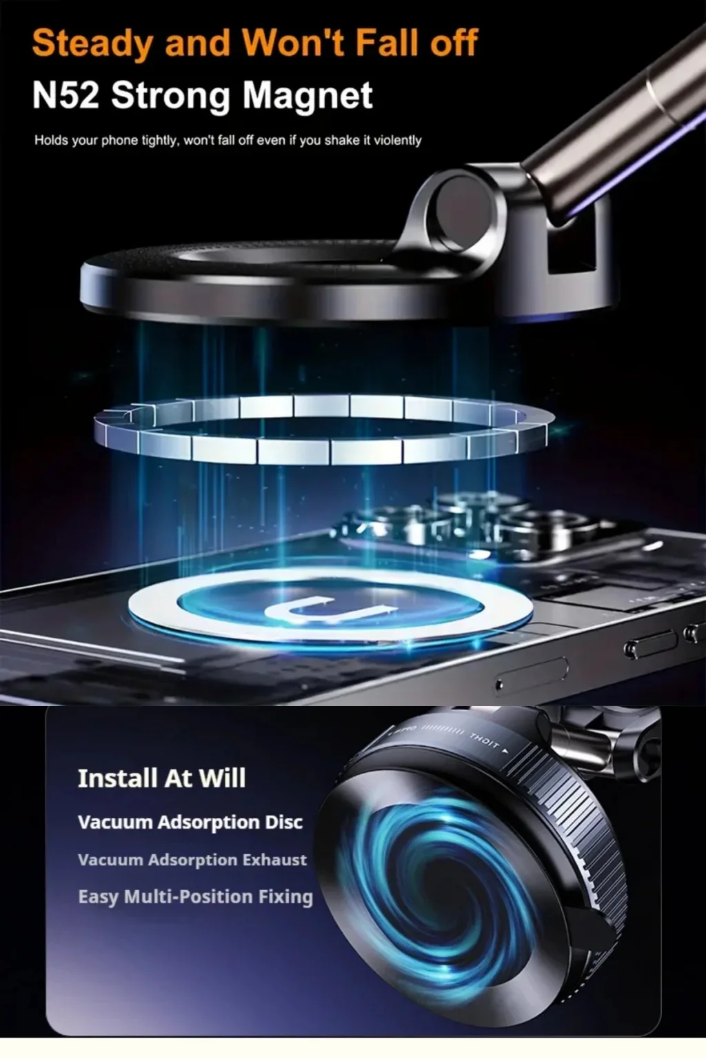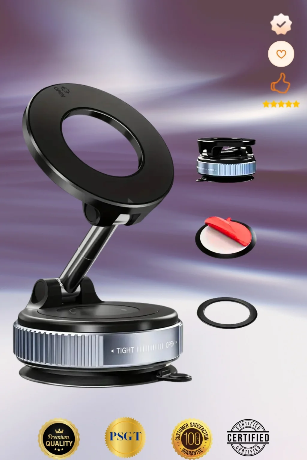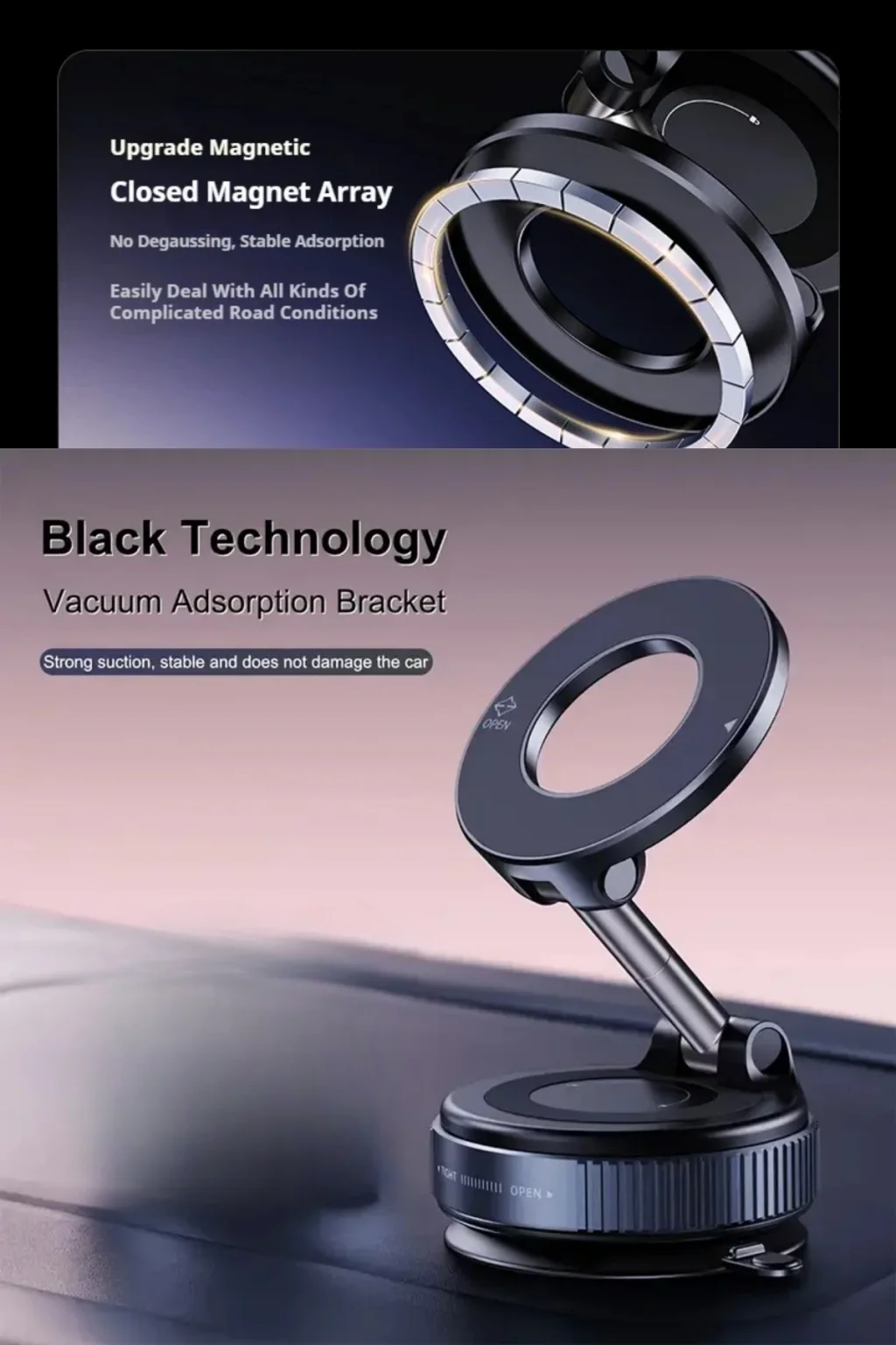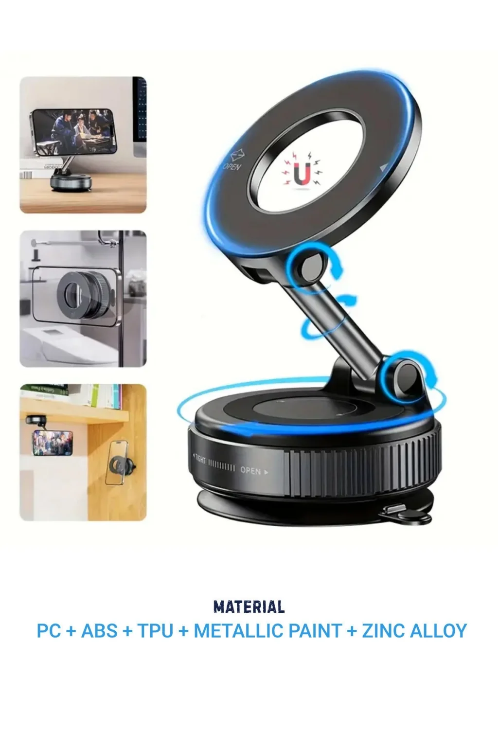 - Vakumlu manyetik tasarımı ile cihazınızı güvenle tutar ve kayma riskini azaltır.