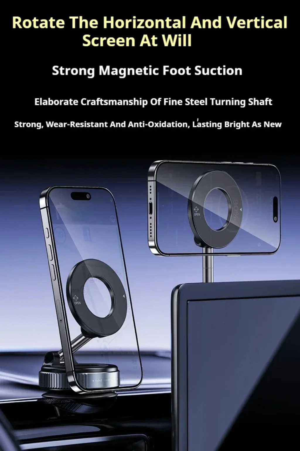 - Mıknatıslı telefon tutucu özelliği ile telefonunuzu güçlü bir şekilde yerine sabitlerken, vantuzlu yapısıyla ekstra güvenlik sağlar.