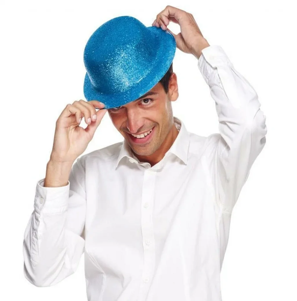 BUĞZ Mavi Renk Simli Melon Yuvarlak Parti Şapkası 24x26 cm