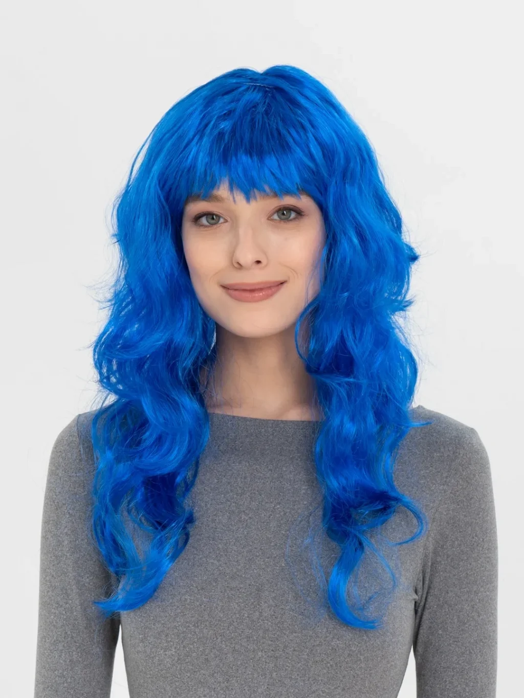 BUĞZ Mavi Renk Uzun Dalgalı Parti Peruğu