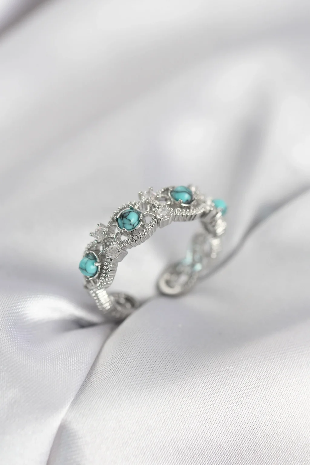 BUĞZ Mavi Taşlı Gümüş Renk Vintage Kadın Yüzük