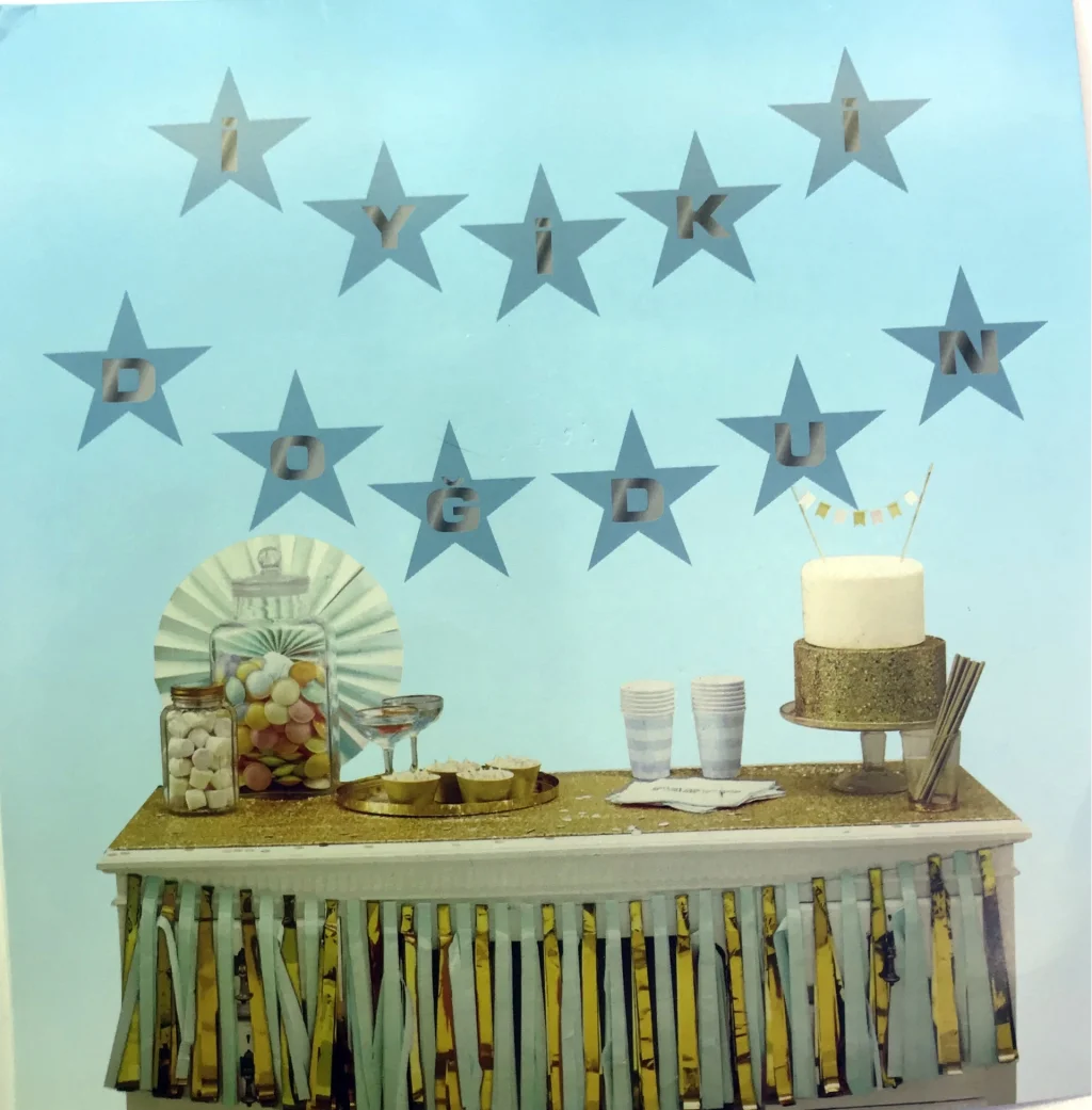 BUĞZ Mavi Üzeri Gümüş Yıldız İyiki Doğdun Flama Süs