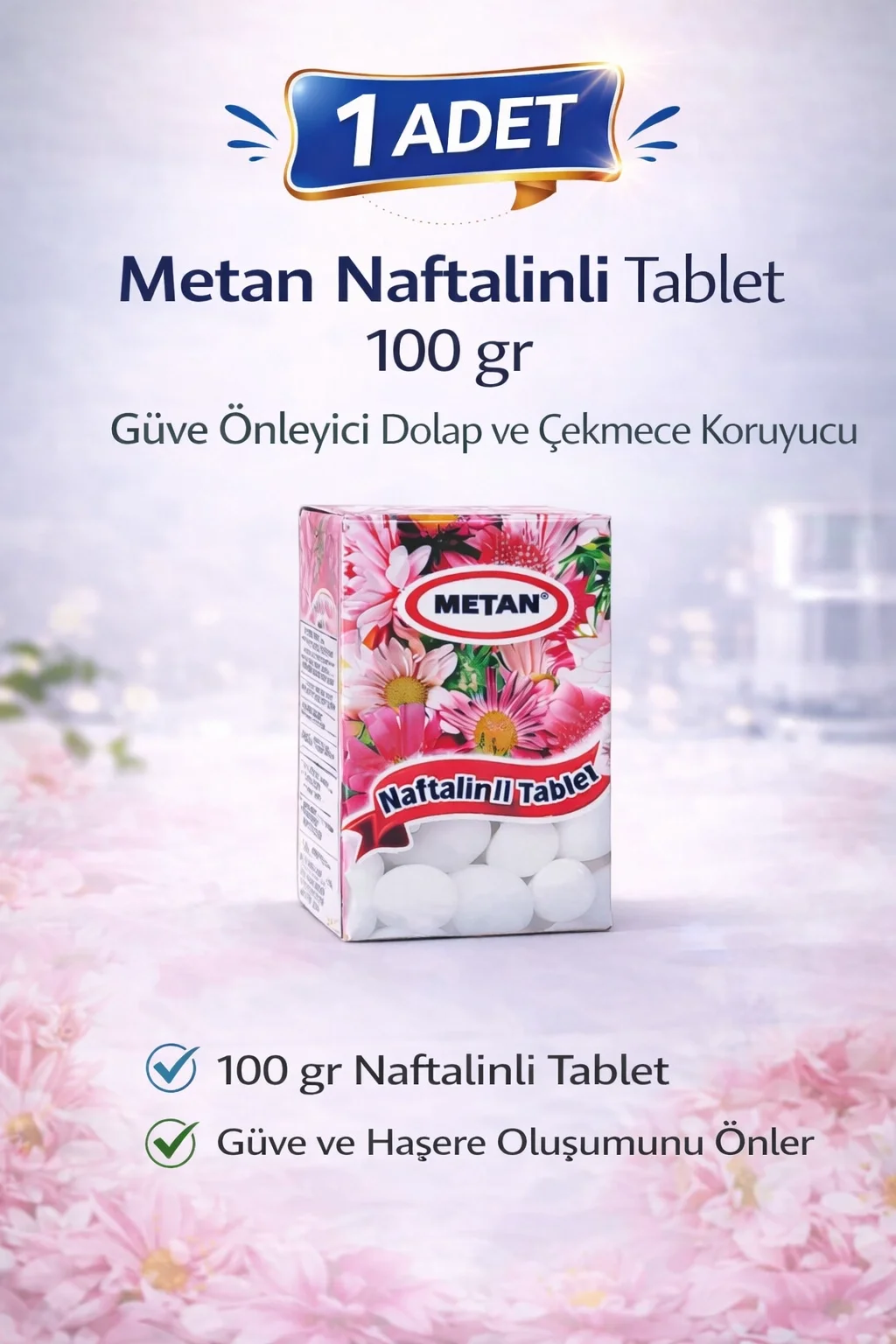 Metan Naftalinli Tablet 100 gr Güve Önleyici Dolap ve Çekmece Koruyucu 1 Paket