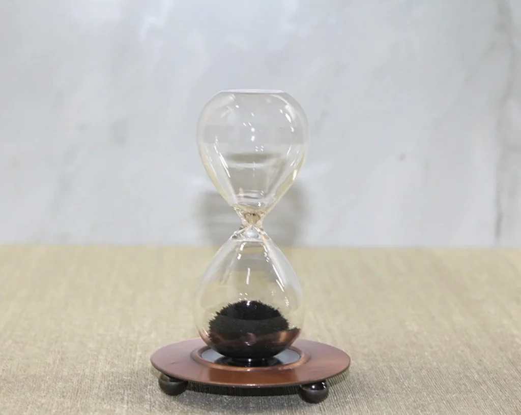 MIKNATISLI KUM SAATİ MODEL 4Ürün ÖzellikleriMıknatıslı Kum Saati Model 4, klasik kum saatlerine modern bir dokunuş ekleyerek manyetik kum taneleri ile etkileyici bir görsellik sunar. Alt tabanında bulunan güçlü mıknatıs sayesinde kumlar ilginç şekiller oluşturur ve kullanıcıya hipnotize edici bir deneyim yaşatır. Dekoratif bir obje olmasının yanı sıra, rahatlatıcı bir etkiye sahiptir ve çalışma alanları, ofisler veya yaşam alanlarında estetik bir atmosfer yaratır.Paket İçeriği1 Adet Mıknatıslı Kum Saati