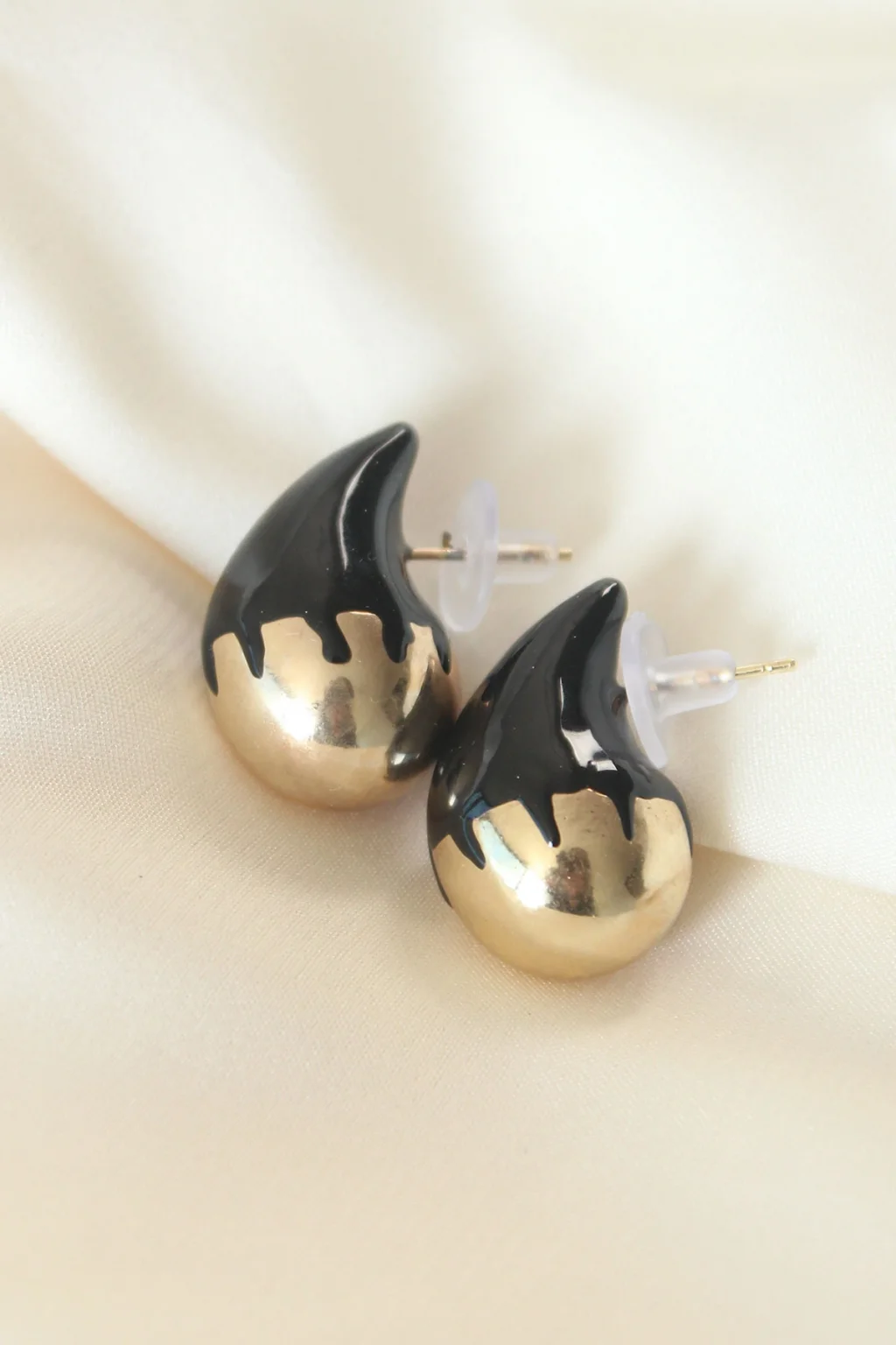 BUĞZ Minimal Siyah Mineli Çift Renk Damla Küpe - Lisinya
