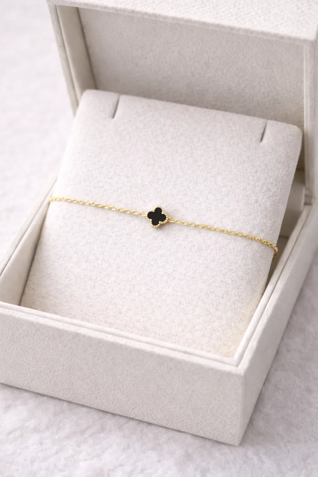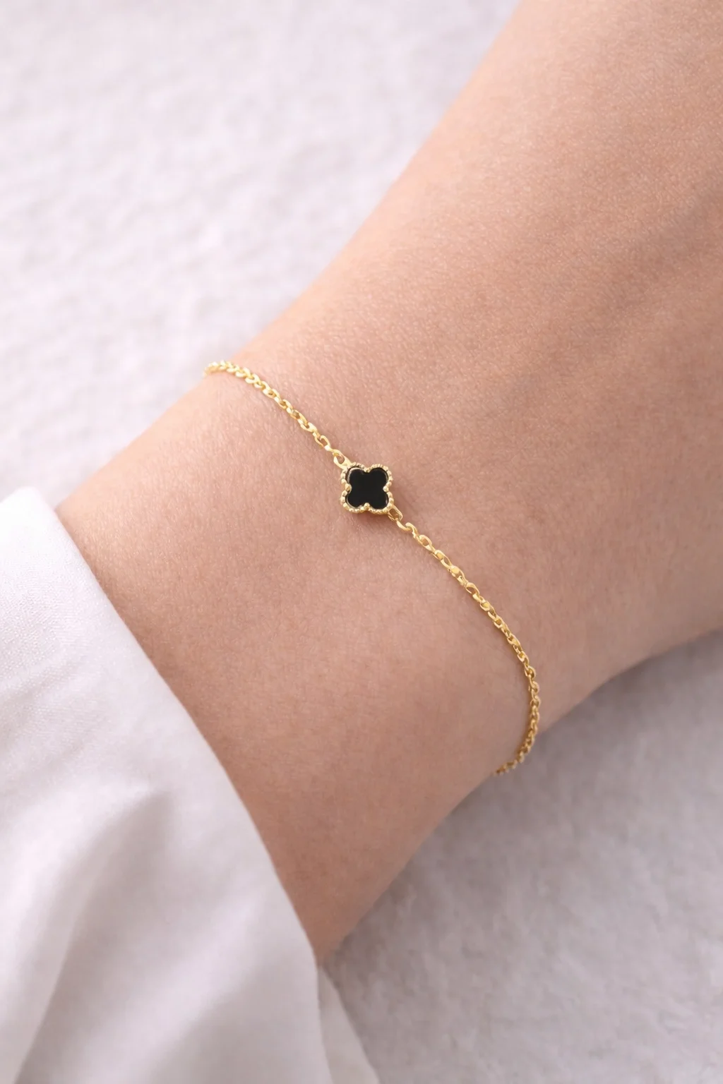 altın renk bileklik, çelik bileklik, siyah yonca bileklik, minimal bileklik, kararma yapmaz bileklik, kadın bileklik, zarif bileklik, günlük bileklik, hediye bileklik