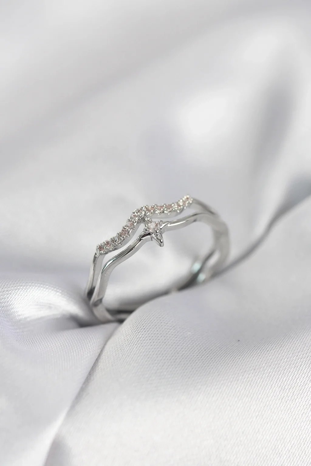 BUĞZ Minimal Yıldız Model Gümüş Renk Zirkon Taşlı Kadın Yüzük