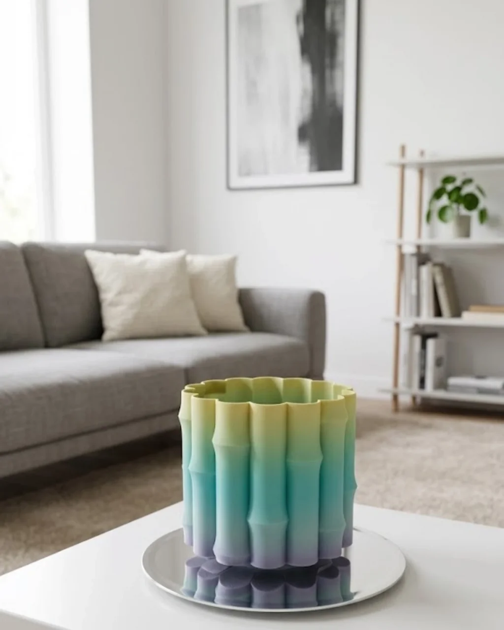 BUĞZ Modern Dekoratif Vazo Yeşil Geçişli Şık Tasarım Masa Üstü Kullanım