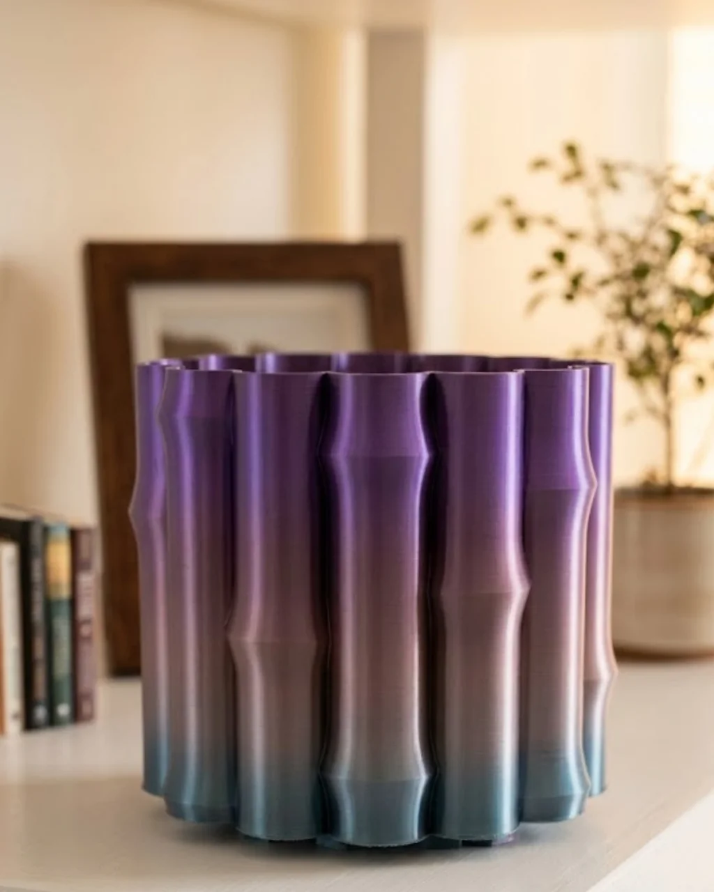 BUĞZ Mor Gri Dekoratif Vazo Modern Tasarım Salon Ofis Masa Üstü Aksesuar