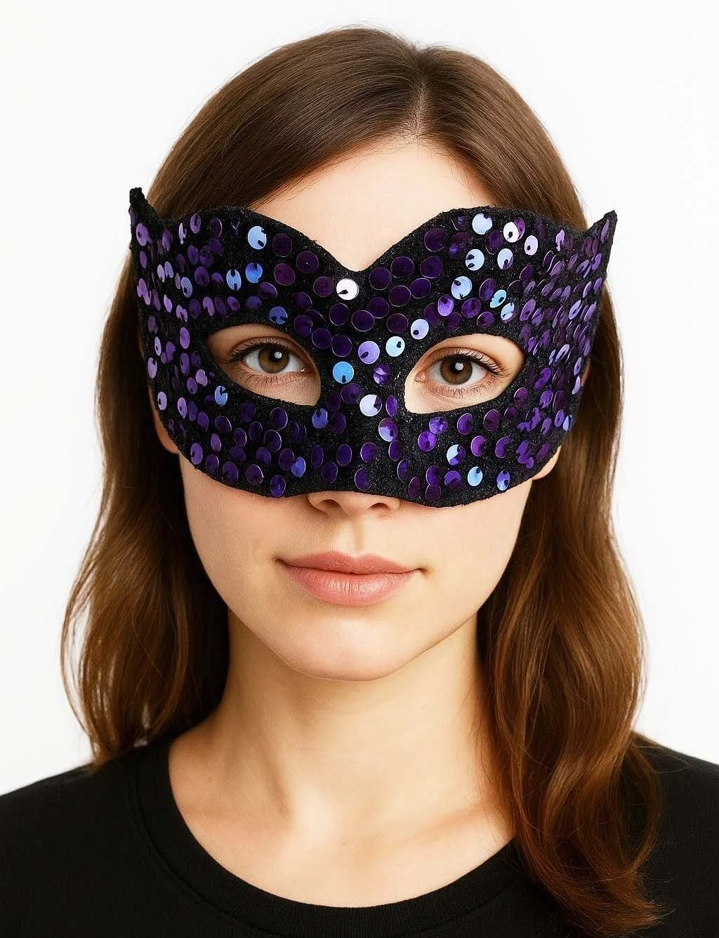 BUĞZ Mor Renk Arkadan Lastikli Pul Payet İşlemeli Balo After Parti Maskesi