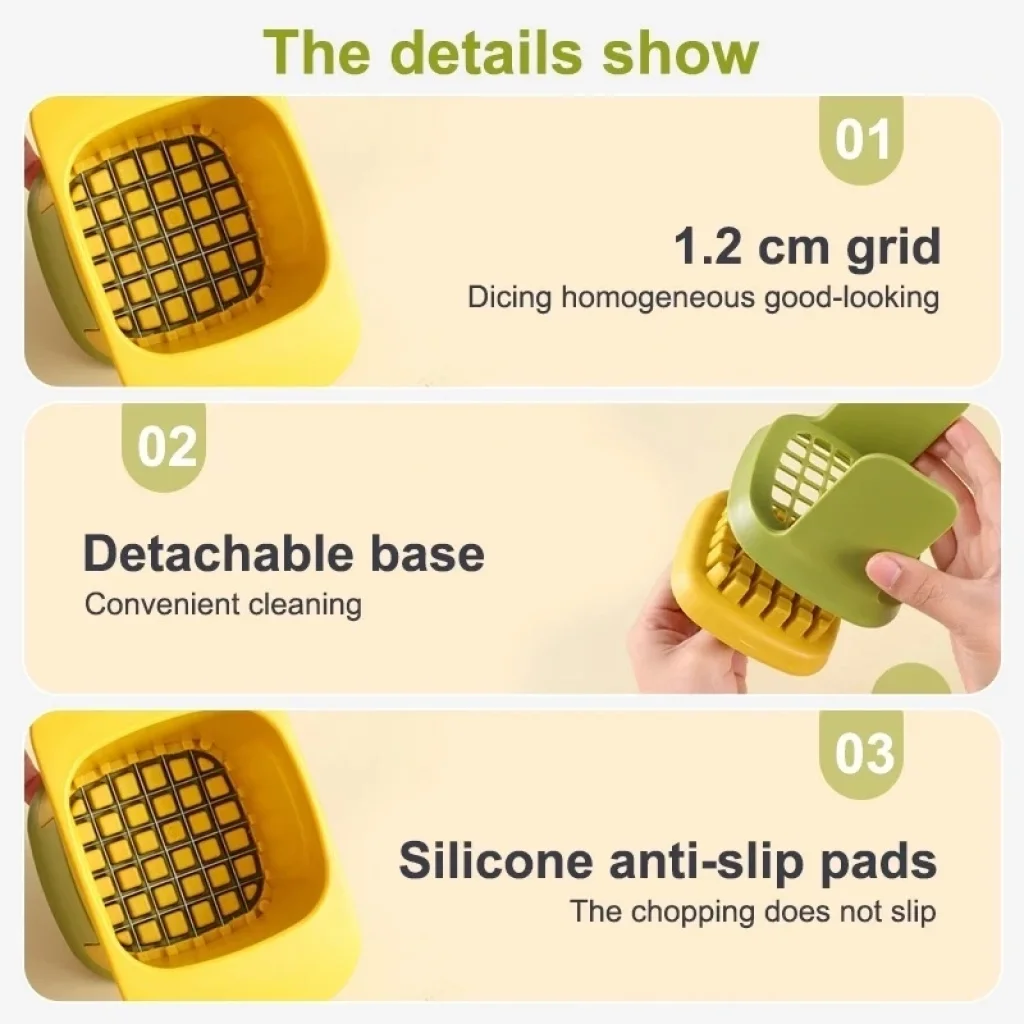 MULTİFONKSİYON SEBZE MEYVE DOĞRAYICI Sebzeleri ve meyveleri hızlıca doğrayın.Elleriniz ürünün güvenli tasarımı sayesinde keskin bıçaklara dokunmaz.Meyve ve sebze doğrarken yaşanan küçük kazaların da önüne geçer.Meyve ve sebzelerinizi doğrarken ekstra alete ya da kesme tahtasına ihtiyacınız olmaz.Paket İçeriği1 adet multfonksiyonel sebze meyve doğrayıcı