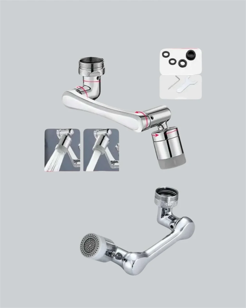 Günlük kullanım için geliştirilmiş olan bu 1080° dönebilen musluk başlığı, evinizdeki lavabo ve muslukları çok daha işlevsel hale getiriyor. Üç eklemli robotik kol sistemi sayesinde toplamda 1080° dönme kapasitesine sahiptir. Bu özel yapı, musluğunuzun sabit yönlü su akışını sınırlamaktan çıkarır, dilediğiniz yöne kolayca yönlendirebilmenizi sağlar. Yukarı, aşağı, sağa veya sola… Suyun nereye akacağını artık siz belirlersiniz.Bu fonksiyonel tasarım, yalnızca konfor sağlamakla kalmaz, temizlik ve hijyen açısından da büyük kolaylık sunar. Yüz yıkama, saç durulama, sebze-meyve temizliği, lavabo içi ve kenarlarının yıkanması gibi işlemler artık çok daha zahmetsiz hale gelir. Özellikle çocuklar, yaşlılar ve engelli bireyler için oldukça ergonomik bir kullanım deneyimi sunar.Cihaz, iki farklı su akışı modu ile donatılmıştır:Köpüklü Akış (Soft Mode): Oksijenle zenginleştirilmiş yumuşak su akışıyla ellerinizi ve yüzünüzü daha konforlu şekilde yıkayabilirsiniz.Güçlü Sprey Modu: Yüksek basınçlı, geniş yüzeyli akışla lavabo, bulaşık veya sebzeleri hızlı ve etkili şekilde durulayabilirsiniz.Modlar arasında geçiş yapmak son derece basittir; başlığın ucundaki halka çevirilerek anında değiştirilebilir.Ürün yalnızca pratik değil, aynı zamanda dayanıklıdır. Katı pirinç gövdesi, uzun ömürlü kullanım sunar ve paslanmaya karşı yüksek dirençlidir. İç kısmındaki 4 katmanlı filtre sistemi, musluk suyunu daha sağlıklı hale getirir; partikülleri ve kirliliği süzerek temiz akış sağlar.Kurulum için ekstra araç gerekmez. Ürün, standart musluklara uygundur ve kutu içeriğinde yer alan adaptör sayesinde farklı diş yapılarıyla da kolayca uyum sağlar. Tak-çalıştır mantığıyla birkaç dakikada monte edebilirsiniz.Sonuç: Hem modern tasarımıyla evinizin şıklığını bozmayan hem de fonksiyonelliğiyle gündelik hayatı kolaylaştıran bu musluk başlığı; mutfak, banyo ve ofis lavaboları için akıllı ve ekonomik bir tercihtir. Ürün Markası: Lisinya