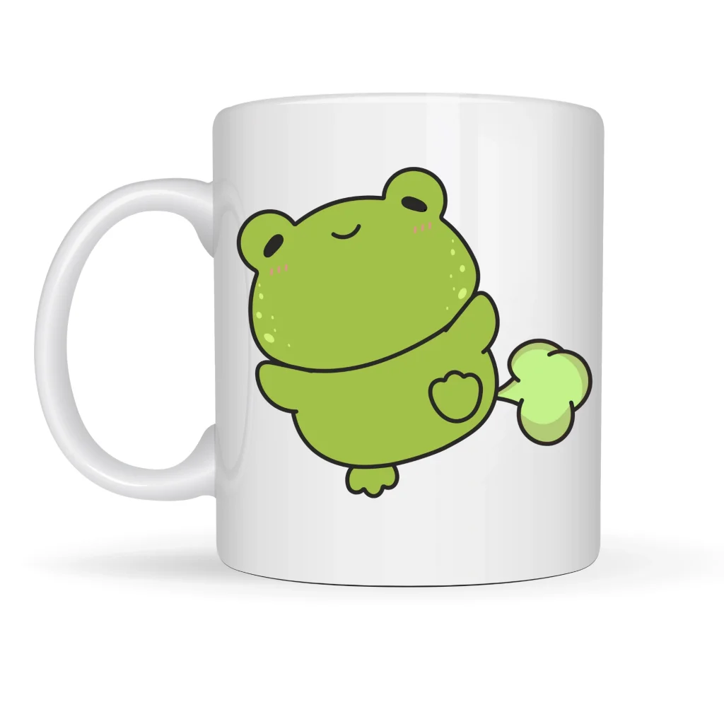 Bu sevimli kurbağa figürlü porselen kupa, rahatlamış duruşu ve tatlı ifadesiyle günün stresini unutturuyor.