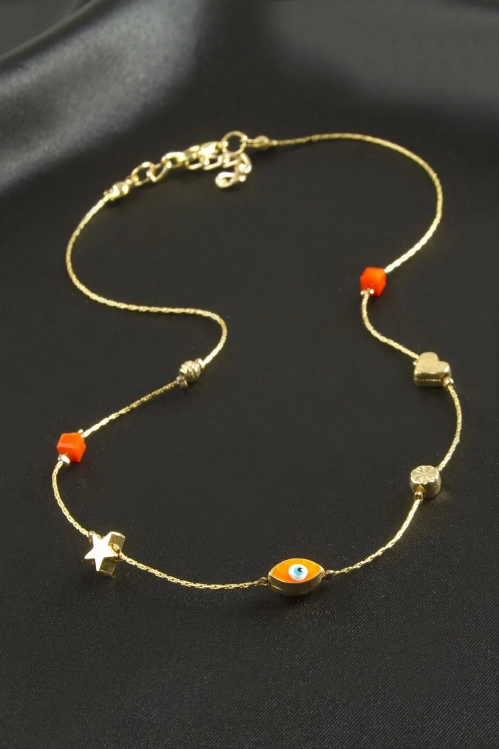 Kolye; Ürün malzemesi metal, boncuk ve mine boyamadır. Ürün boyu 45 cmdir. Kartlıdır. 1 adet olarak gönderilecektir.