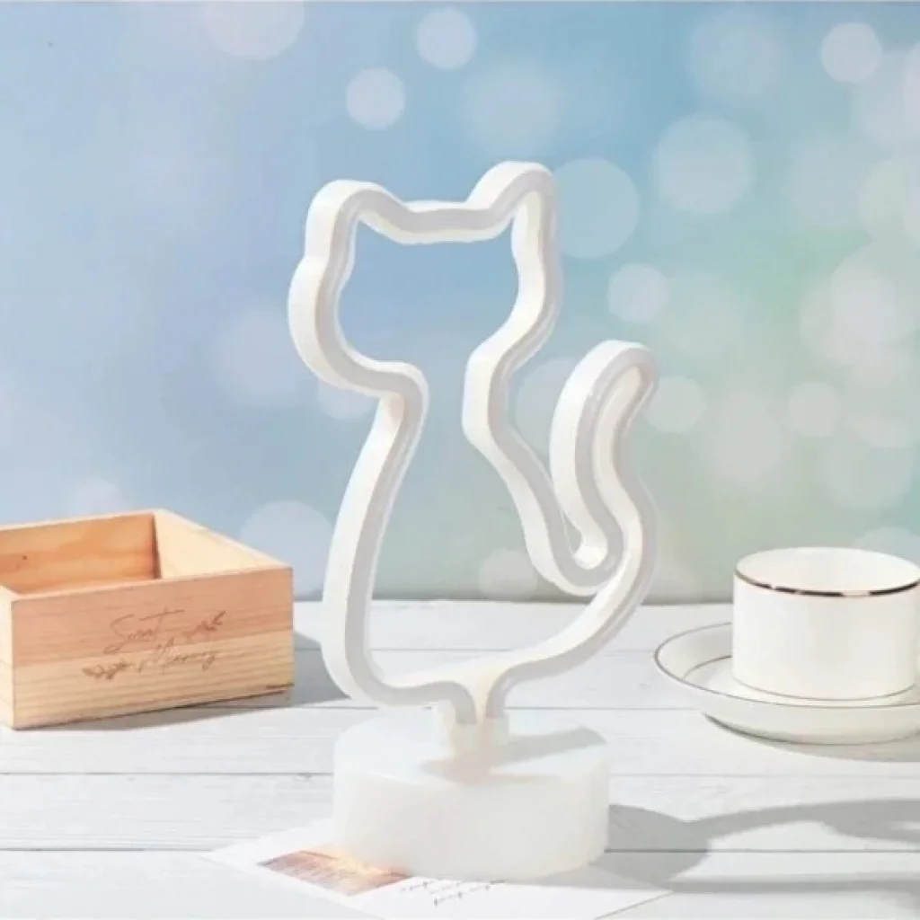 NEON IŞIKLI KEDİ TASARIMLI LAMBA Ürün ÖzellikleriEvinizin atmosferini kedilerin zarif ve huzur veren silüetiyle aydınlatın! Neon Işıklı Kedi Tasarımlı Lamba, modern çizgileri ve yumuşak gün ışığı (warm white) rengiyle yaşam alanlarınıza estetik bir dokunuş katar. Hem dekoratif bir gece lambası hem de şık bir masaüstü objesi olarak kullanabileceğiniz bu ürün, çift yönlü güç seçeneğiyle büyük kullanım kolaylığı sağlar. İster 3 adet AA pil ile kablosuz özgürlüğün tadını çıkarın, ister kutu içeriğindeki USB kablosu ile bilgisayar, powerbank veya adaptöre bağlayarak kesintisiz aydınlatmanın keyfini sürün. Göz yormayan neon LED teknolojisi sayesinde uzun ömürlü ve enerji tasarrufludur. Kedi severler için mükemmel bir hediye alternatifi olan bu lamba; çocuk odaları, yatak odaları veya çalışma masaları için modern ve stil sahibi bir aydınlatma çözümüdür.Ürün Teknik ÖzellikleriÖzellikAçıklamaIşık RengiGün Işığı (Warm White)Güç Kaynağı3 Adet AA Pil (Dahil değildir) veya USB Kablo (Dahildir)MalzemeYüksek Kaliteli Esnek Neon LED & Dayanıklı Plastik KaideTasarımMinimalist Kedi SilüetiKullanım TürüMasaüstü Standlı KullanımKullanım AlanıGece Lambası, Dekoratif Aydınlatma, HediyePaket İçeriği1 Adet Neon Işıklı Kedi Tasarımlı Lamba