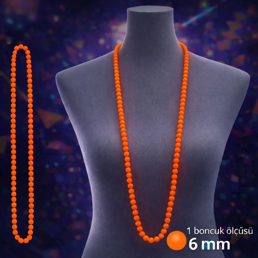 BUĞZ Neon Turuncu Boncuk Kolye 80 cm – Retro 80’ler 90’lar Parti Aksesuarı