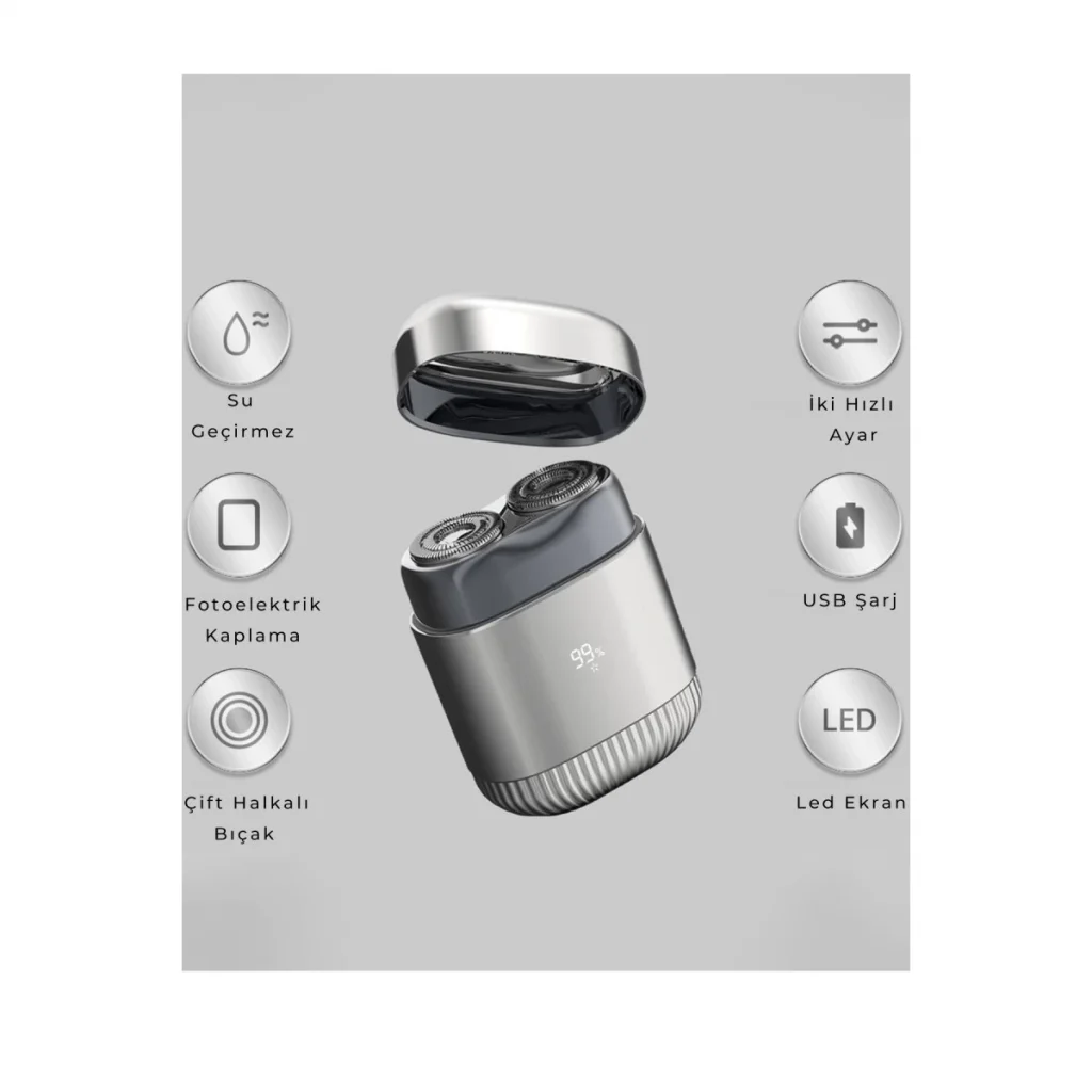 BUĞZ Şarjlı Kablosuz Tıraş Makinesi Çift Başlık Kuru Tıraş Ergonomik Taşınabilir