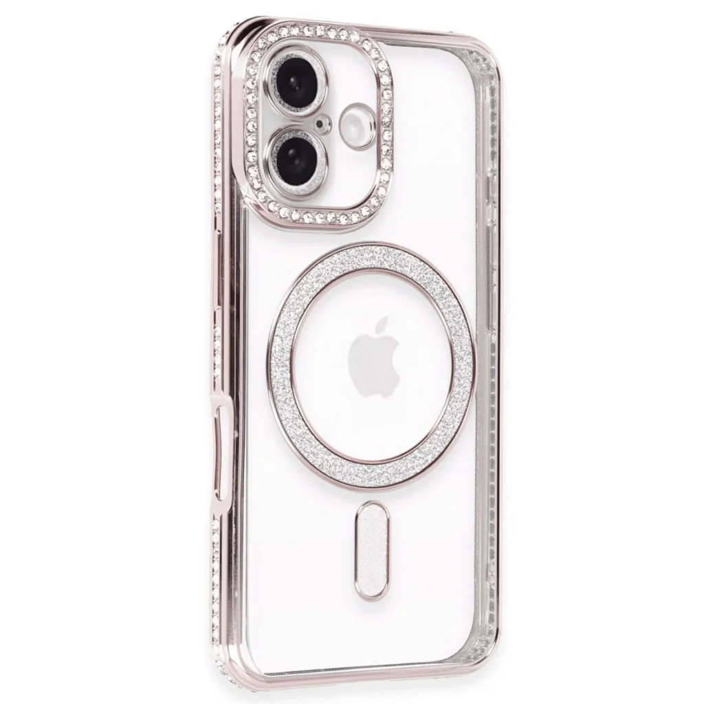 İphone 16 Plus Kılıf Joke Simli Magneticsafe Kılıf - Pembe