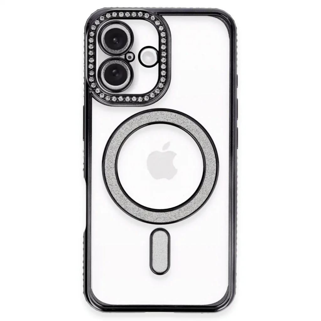 İphone 16 Plus Kılıf Joke Simli Magneticsafe Kılıf - Siyah