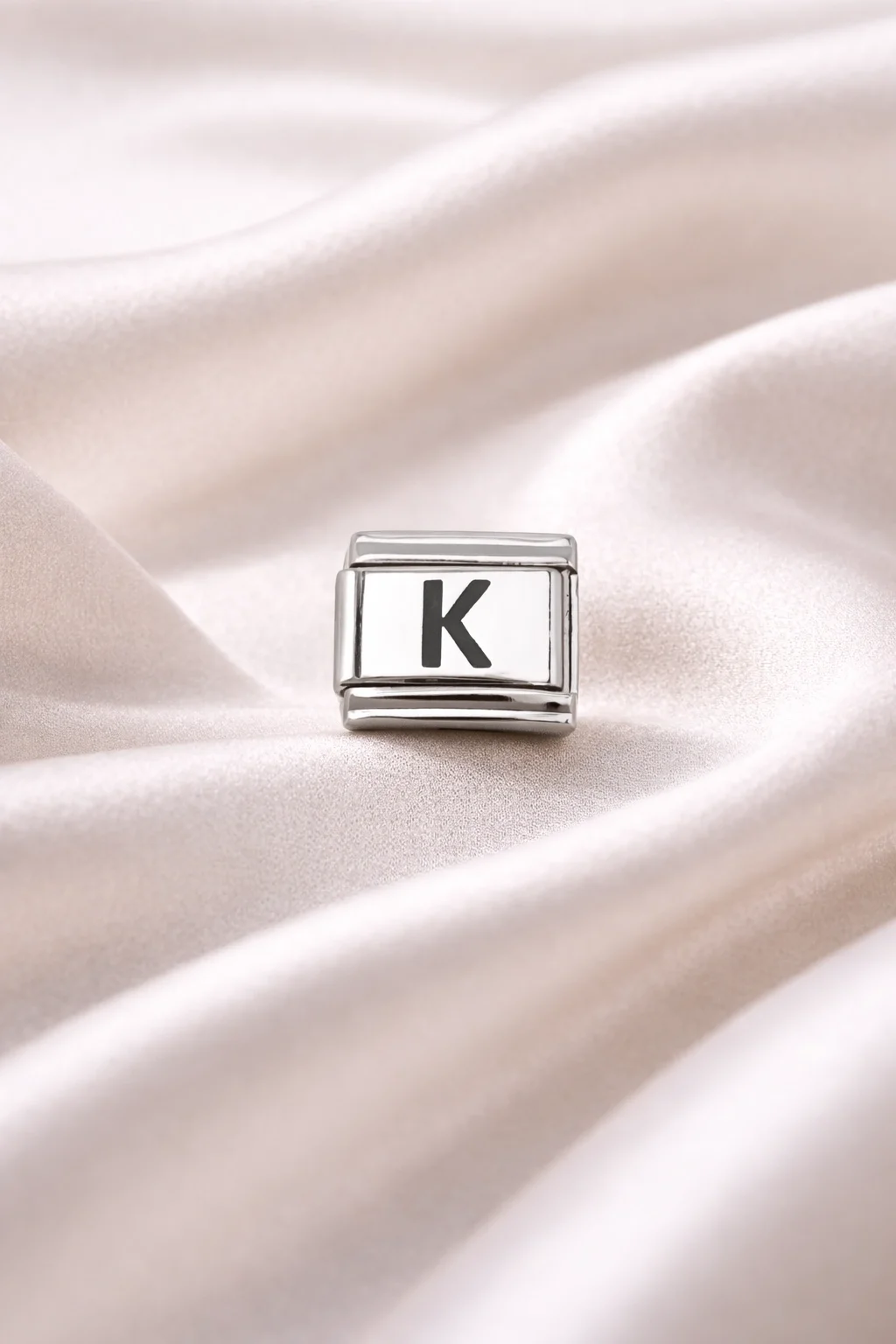Nomination Uyumlu K Harf Charm | Çelik Bileklik Aksesuarı | Kişiye Özel Harf Modülü | Minimal & Şık Tasarım Bilekliğinize sizi anlatan küçük ama anlamı büyük bir detay ekleyin ? Nomination bilekliklerle tam uyumlu K harf charm, sade tasarımı ve zamansız şıklığıyla stilinizi kişiselleştirmenin en zarif yollarından biridir. Parlak ve dayanıklı çelik yapısı sayesinde günlük kullanıma uygundur ve uzun süre ilk günkü görünümünü korur. Tek başına minimal bir şıklık sunar, farklı charm?larla birlikte kullanıldığında ise tamamen size özel bir bileklik oluşturur. İster kendi isminizin baş harfi, ister sevdiğiniz birinin anlamlı bir simgesi? Bu charm, bilekliğinize duygusal bir dokunuş katar ?? ??Hediye olarak da çok tercih edilir. Doğum günü, yıl dönümü, sevgililer günü ya da özel bir sürpriz için zarif ve risksiz bir hediye alternatifidir. ? Ürün Özellikleri