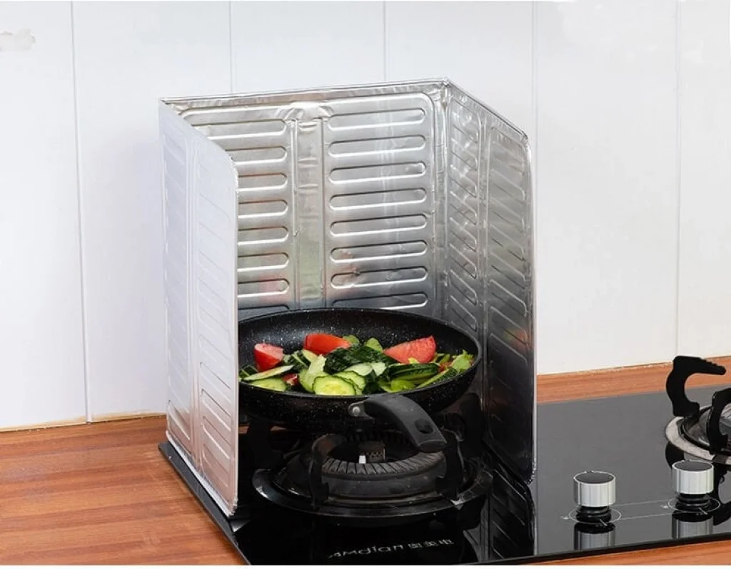BUĞZ Ocak Yağ Sıçrama Koruyucu Katlanır Alüminyum Levha -Kolay Silinir Piknik Tüpü Rüzgar Önleyici Panel