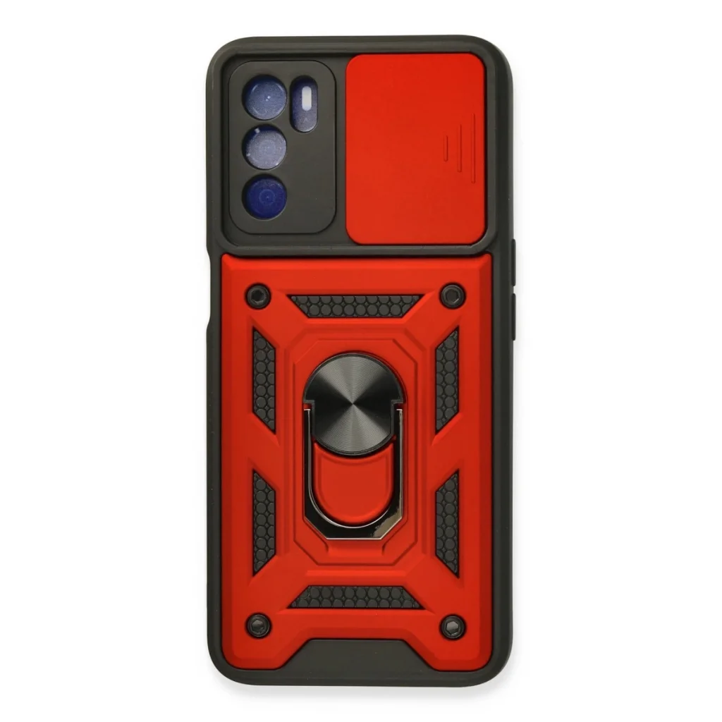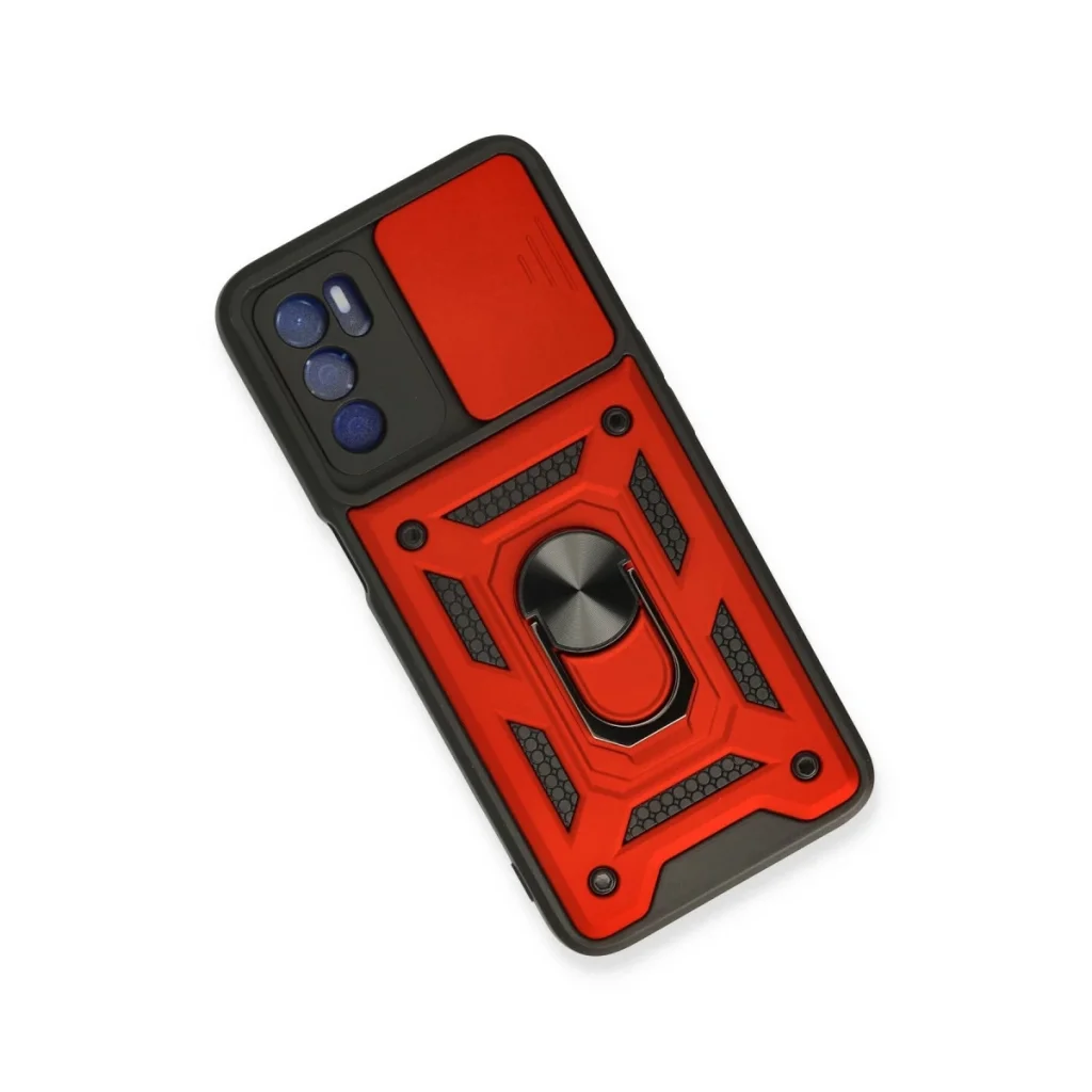 Oppo A16 Kılıf Pars Lens Yüzüklü Silikon - Kırmızı