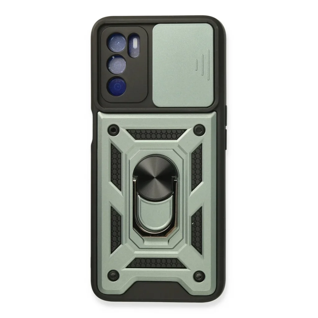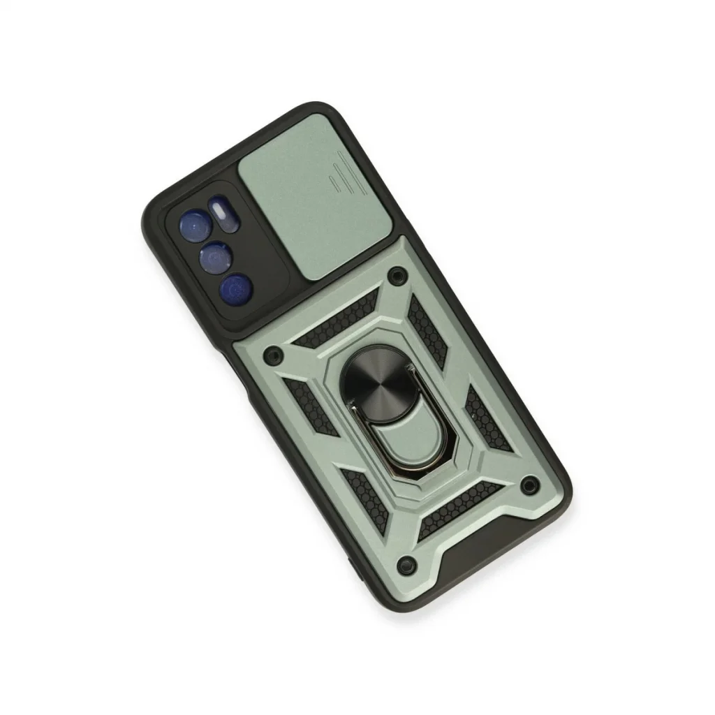 BUĞZ Oppo A16 Kılıf Pars Lens Yüzüklü Silikon - Yeşil
