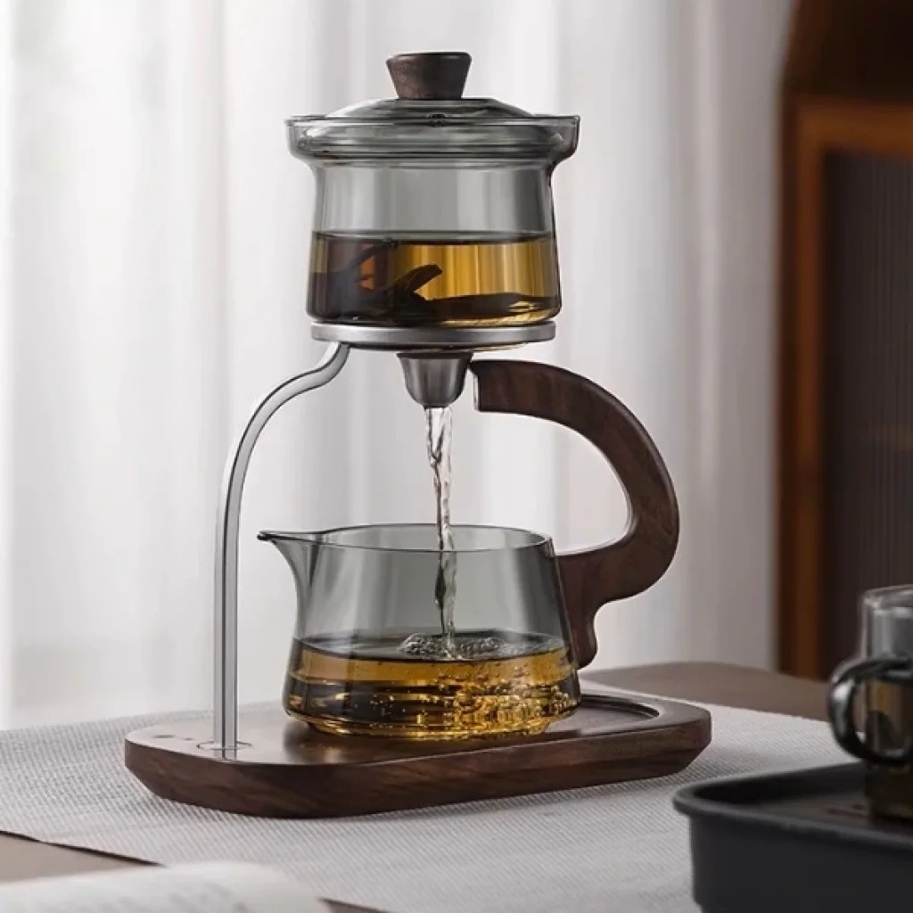 OTOMATİK MANYETİK BOROSİLİKAT DEMLİK SETİÜrün ÖzellikleriZarif tasarımı ve yenilikçi yapısıyla öne çıkan Otomatik Manyetik Borosilikat Demlik Seti, çay keyfini şıklık ve pratiklikle buluşturur. Isıya dayanıklı borosilikat cam malzemeden üretilmiş olup, yüksek sıcaklıklara karşı dirençlidir ve uzun ömürlü kullanım sağlar. Şeffaf cam yapısı sayesinde demlenme sürecini kolayca takip edebilirsiniz.Manyetik otomatik akış sistemiyle donatılan üst demlik, alt hazneye çayı kontrollü bir şekilde aktarır. Bu özellik, hem taşırmadan hem de damlatmadan pratik kullanım imkânı sunar. Modern tasarımlı ahşap taban ve metal destekli standı, mutfakta veya misafir sofralarında dekoratif bir görünüm oluşturur.Ergonomik tutma sapı sayesinde güvenli kullanım sağlar. Hem siyah çay hem bitki çayları için uygundur. Günlük kullanımda ya da özel davetlerde estetik ve konforu bir araya getirir.Paket İçeriği1 adet Otomatik Manyetik Borosilikat Demlik Seti