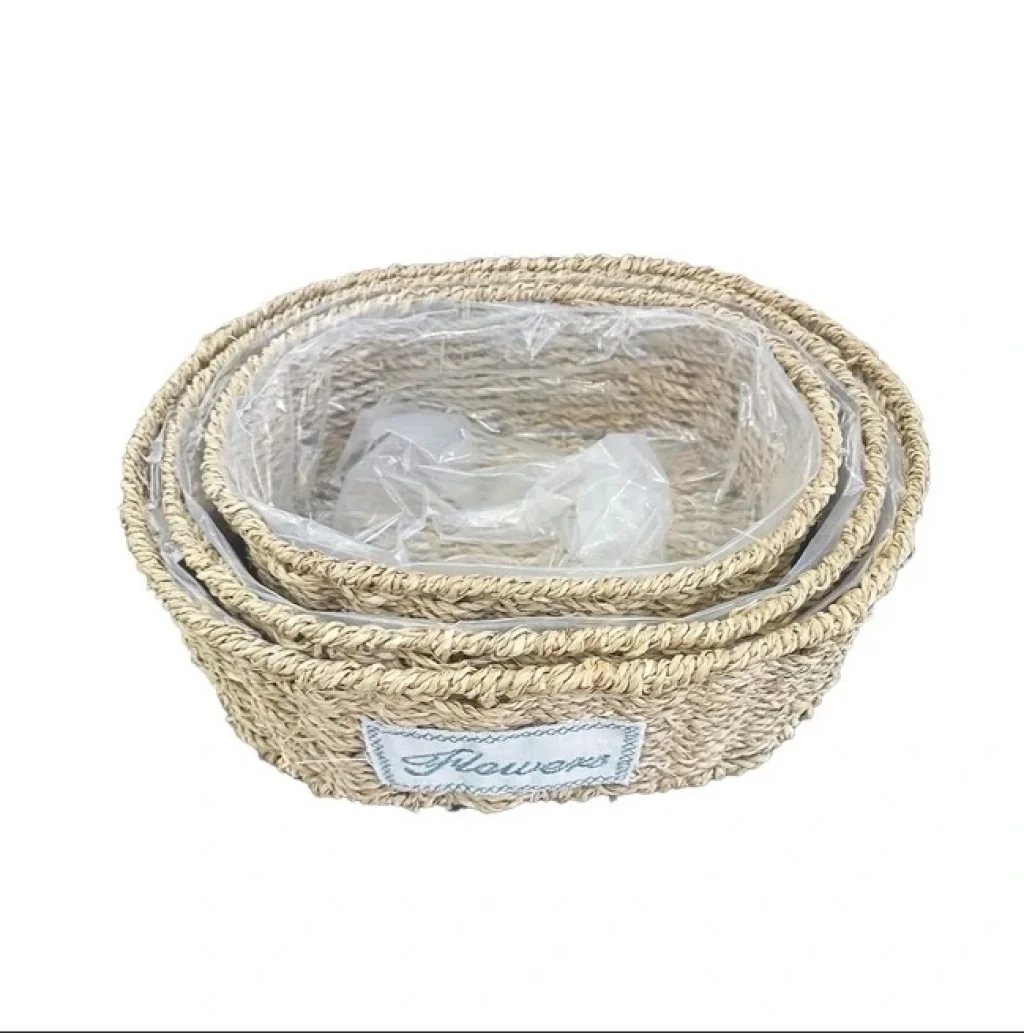 BUĞZ Oval Doğal Hasır Saksı Seti - 3'lü