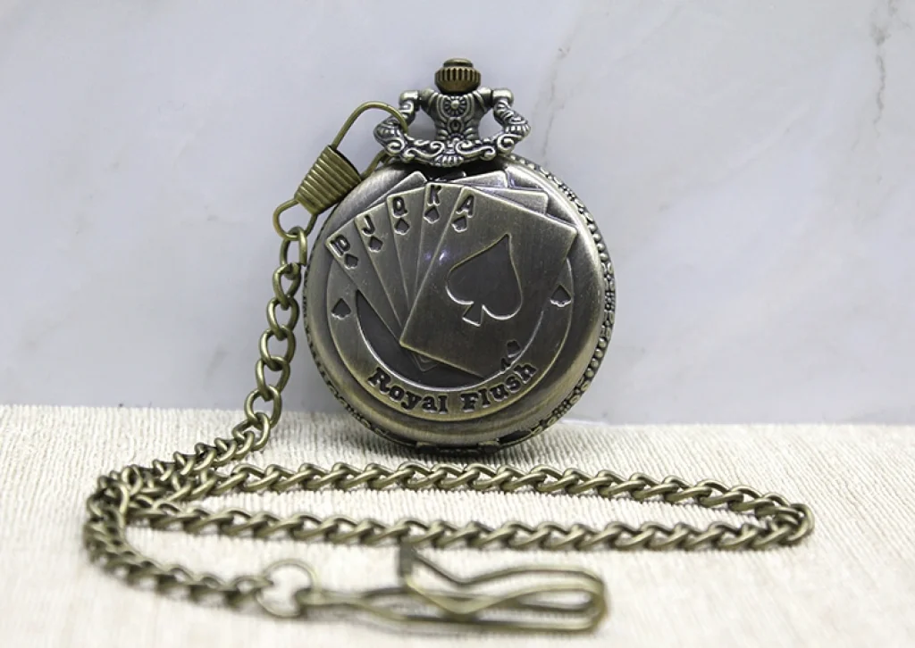 OYUN KARTI TASARIMLI KÖSTEKLİ SAAT Ürün ÖzellikleriOyun Kartı Tasarımlı Köstekli Saat, klasik cep saati formunu dikkat çekici oyun kartı detaylarıyla birleştiren şık bir aksesuardır. 4x5 cm ölçüsündeki kompakt yapısı sayesinde cepte kolay taşınabilir ve zincirli tasarımı ile hem kullanışlı hem dekoratif bir görünüm sunar. Kapak kısmında yer alan oyun kartı temalı tasarım detayı ürüne estetik bir karakter kazandırır. Zincirli yapısı sayesinde köstekli cep saati olarak klasik bir stil tamamlayıcısıdır. Günlük kullanımın yanı sıra koleksiyon ve dekoratif amaçlı da tercih edilebilecek şık bir nostaljik saat modeli alternatifidir.Ürün Teknik Özellikleri Özellik Açıklama Ürün Adı Oyun Kartı Tasarımlı Köstekli Saat Ölçü 4 x 5 cm Tasarım Oyun kartı temalı kapak Kullanım Zincirli köstekli cep saati Kullanım Alanı Aksesuar, koleksiyon ve dekoratif kullanım Paket İçeriği1 adet Oyun Kartı Tasarımlı Köstekli Saat