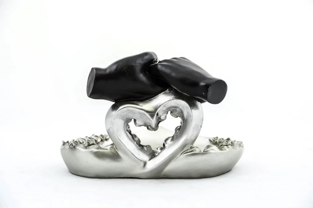 ÖZEL TASARIM KALPLİ POLYESTER SUNUM TEPSİSİÜrün ÖzellikleriModern bir tasarıma sahip olan bu özel tasarım kalpli sunum tepsisi, şık ve estetik detaylarla tamamlanmıştır. 23x16 cm boyutunda, siyah ellerin ve gümüş renkli gül motiflerinin birleşimiyle tasarlanmış olan bu obje, hem görsel açıdan etkileyici hem de dekoratif açıdan dikkat çekicidir. Polyester malzemeden üretilen bu sunum tepsisi, zarif yapısı ile sofralarınızı ve iç mekan dekorasyonunuzu zenginleştirir. Hem şık bir hediye hem de eşsiz bir koleksiyon parçası olarak kullanılabilir.Paket İçeriği1 Adet Özel Tasarım Kalpli Polyester Sunum Tepsisi