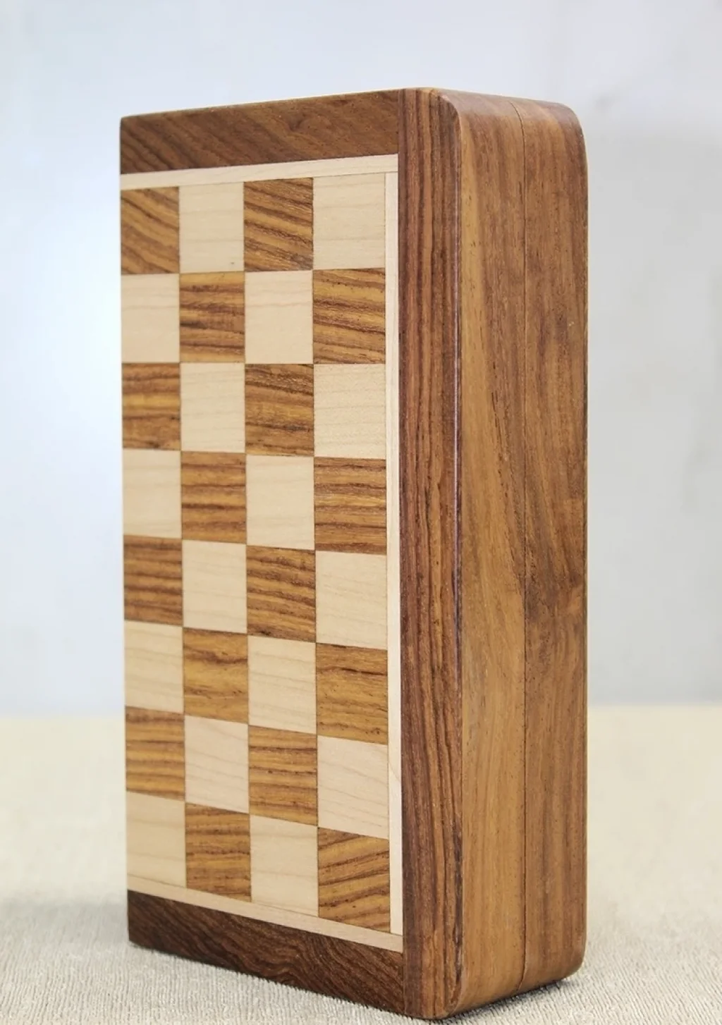 Özel Vernikli Mıknatıs Taşlı Ahşap Katlanabilir Kutulu Satranç Oyunu 17.5 Cm G221