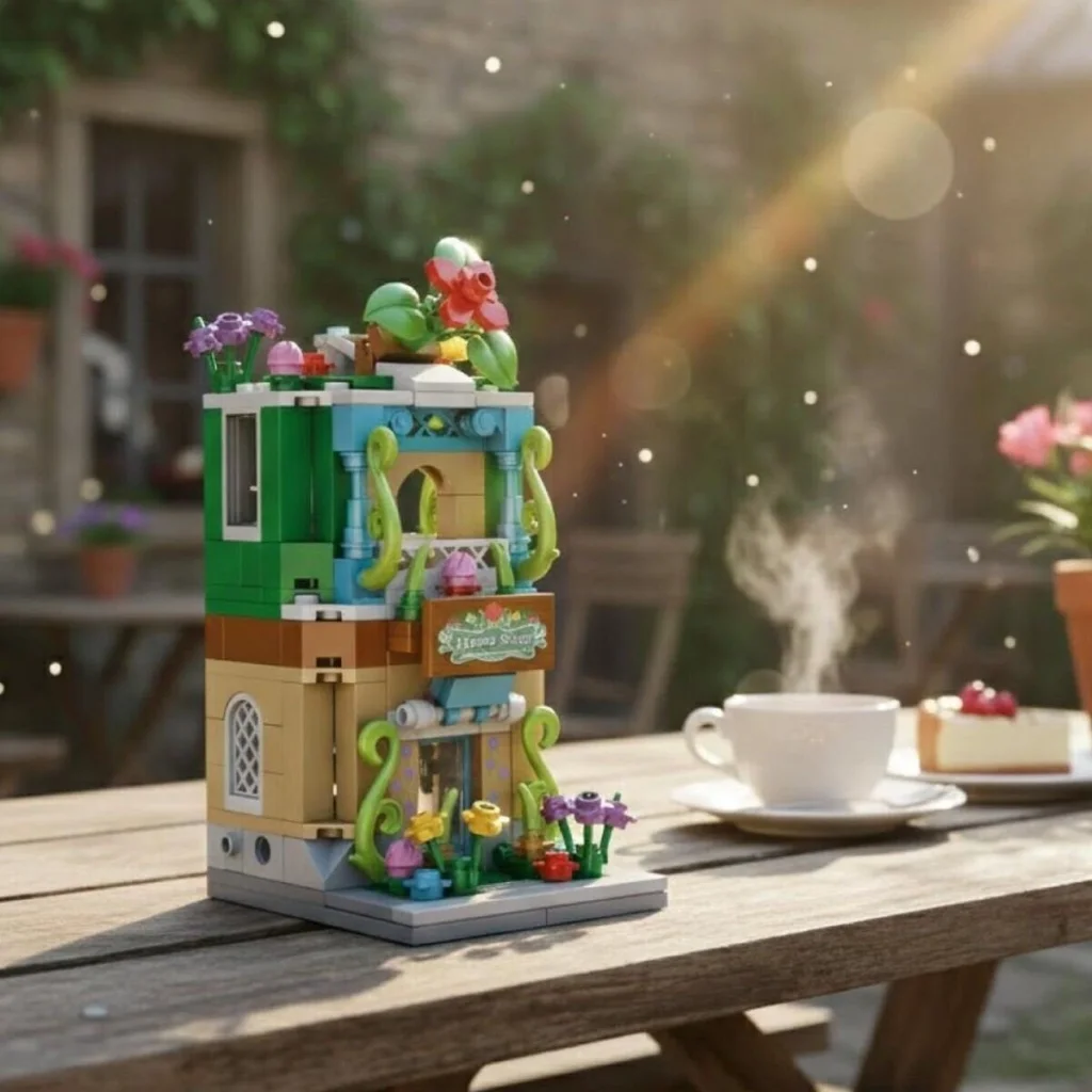 PANLOS Çiçek Dükkanı Block Oyuncak, vitrinli mağaza tasarımı ve çiçek detaylarıyla 280 parçadan oluşan estetik bir yapı setidir.