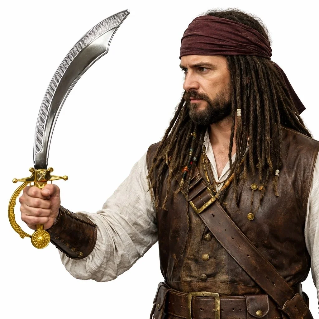 Macera ve deniz ruhunu yansıtan 45 cm Parlak Detaylı Korsan Kılıcı, klasik eğimli bıçak formu ve altın renkli kabza tasarımıyla dikkat çeker. Parlak metal görünümlü yüzeyi ve detaylı sap işçiliği sayesinde güçlü ve etkileyici bir görünüm sunar.