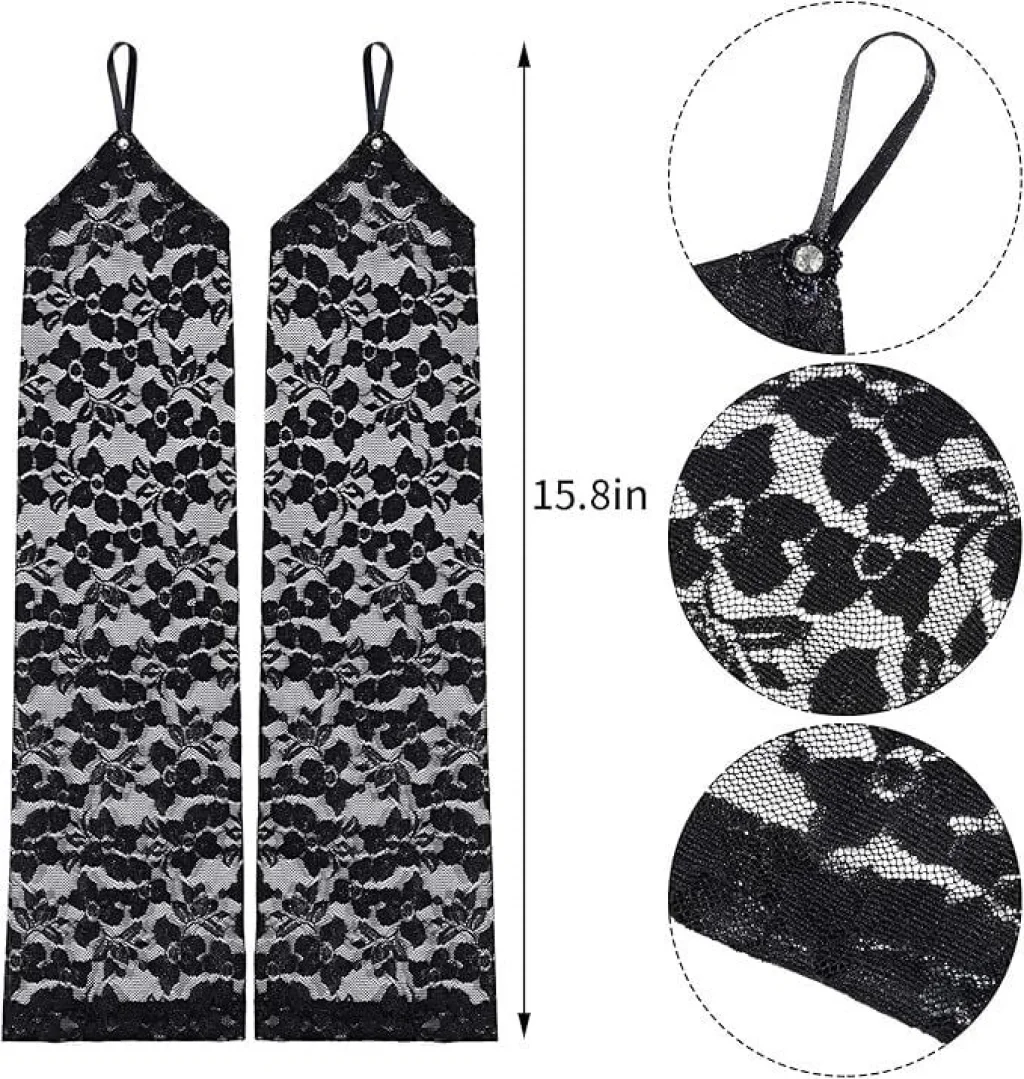 BUĞZ Kısa Boy Likralı Güpürlü Yetişkin Tül Eldiven Siyah Renk