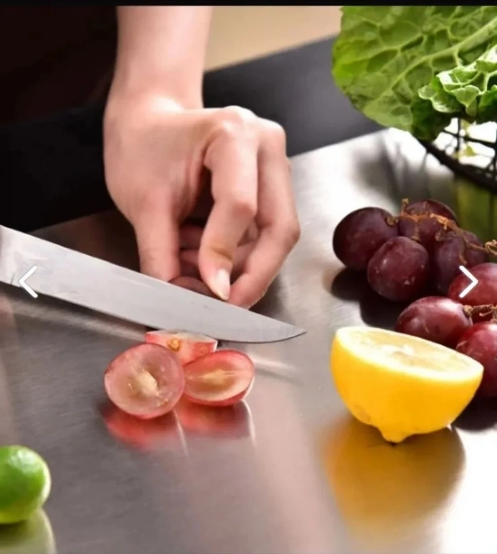Paslanmaz Çelik Kesim PanosuÜrün Açıklaması:Dayanıklı ve şık paslanmaz çelik kesim panosu, mutfağınızda hijyen ve uzun ömürlülük sunar. Kolay temizlenebilir yüzeyi ve kaymaz yapısı ile güvenli ve pratik kullanım sağlar. Sebzelerden et ürünlerine kadar her türlü yiyeceği rahatlıkla kesip doğrayabilirsiniz. Estetik tasarımı sayesinde mutfağınıza modern bir dokunuş katar.Malzeme: Yüksek kaliteli paslanmaz çelikÖzellikler: Dayanıklı, kaymaz yüzey, hijyenik ve kolay temizlenebilirBoyutlar: Pratik kullanım için ideal boyutKullanım Alanı: Sebze, meyve, et ve diğer yiyecekler için uygunürün ölçüsü 25 cm x35 cm