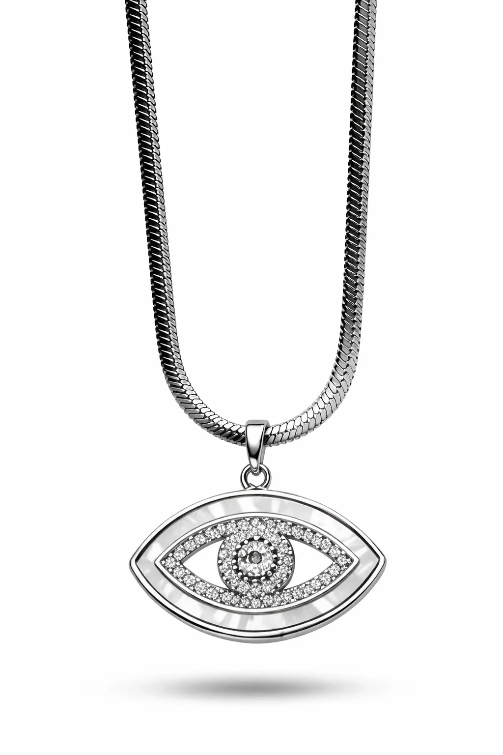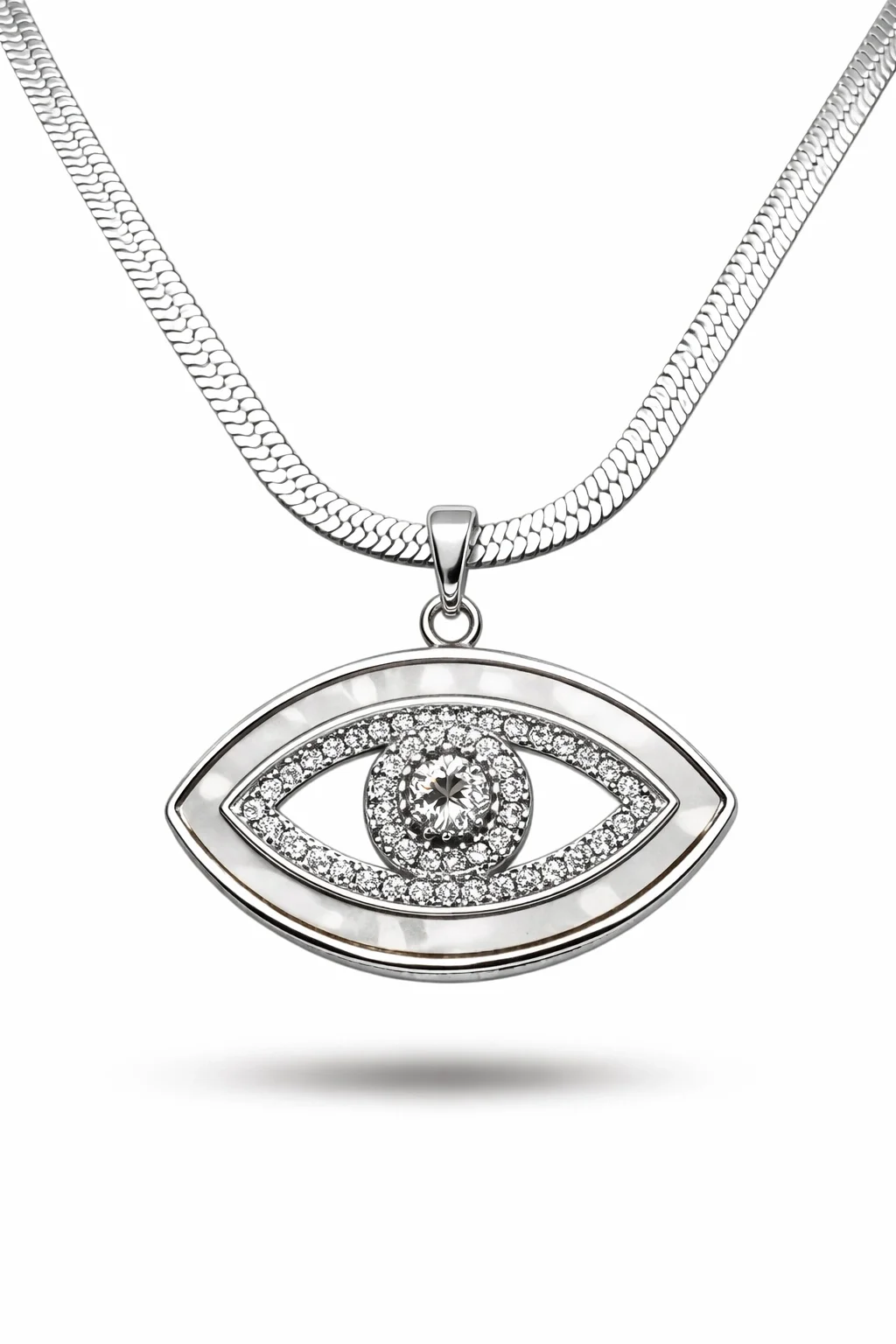 Paslanmaz Çelik Nazar Göz Kolye MODEL 4 – Zirkon Taşlı Parlak Tasarım | Kararmaz Kadın Kolyesi Şıklığı ve anlamı bir araya getiren paslanmaz çelik nazar göz kolye, modern ve zarif tasarımıyla günlük kullanıma uygun özel bir aksesuardır. Nazar göz formu, merkezde yer alan ışıltılı zirkon taş detaylarıyla birlikte kolyeye dikkat çekici ve estetik bir görünüm kazandırır. Paslanmaz çelik materyal sayesinde kararma, solma ve renk atması yapmaz. Uzun süreli kullanıma uygun yapısıyla hem günlük kombinlerde hem de özel günlerde rahatlıkla tercih edilebilir. Minimal ve zamansız tasarımı sayesinde tek başına kullanıldığında şık, diğer kolyelerle kombinlendiğinde ise trend bir görünüm oluşturur. ? Öne Çıkan Özellikler
