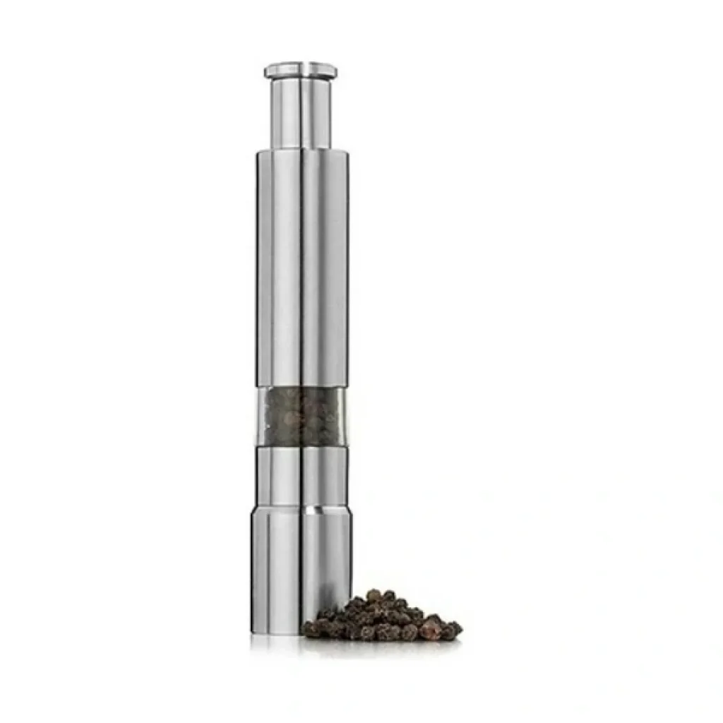 PASLANMAZ ÇELİK OTOMATİK BASMALI BAHARAT ÖĞÜTÜCÜÜrün ÖzellikleriYenilikçi karabiber değirmeni, baharatları hızlı ve kolay bir şekilde dağıtarak mutfak deneyiminizi pratik hale getirir. Tek elle kullanılabilen bu değirmen, üzerine basarak baharatları öğütmenize olanak tanır. Doldurmak için alt kısmındaki vida kısmını açarak baharatları kolayca ekleyebilirsiniz. Biber, mısır, hardal tohumu ve diğer küçük boyutlu baharatların öğütülmesi için uygundur. Özellikle biber, tuz ve diğer baharat türlerini öğütmek için verimli ve kullanışlıdır. Bu otomatik öğütücü, aile mutfakları, restoranlar ve oteller için idealdir.Paket İçeriği1 adet Paslanmaz Çelik Otomatik Basmalı Baharat Öğütücü