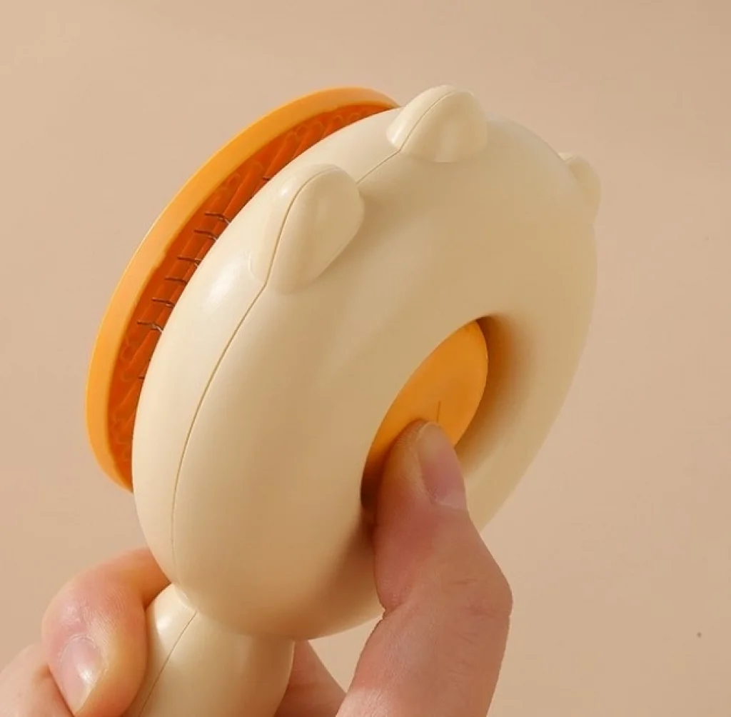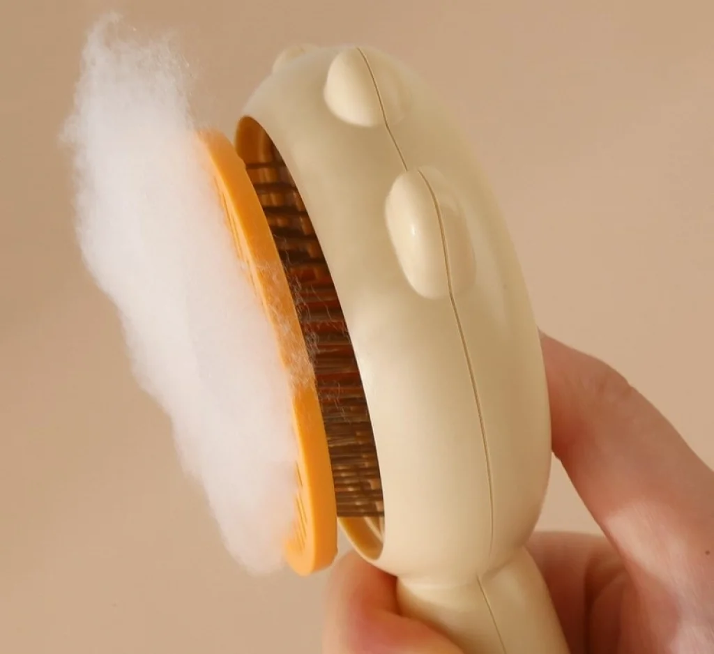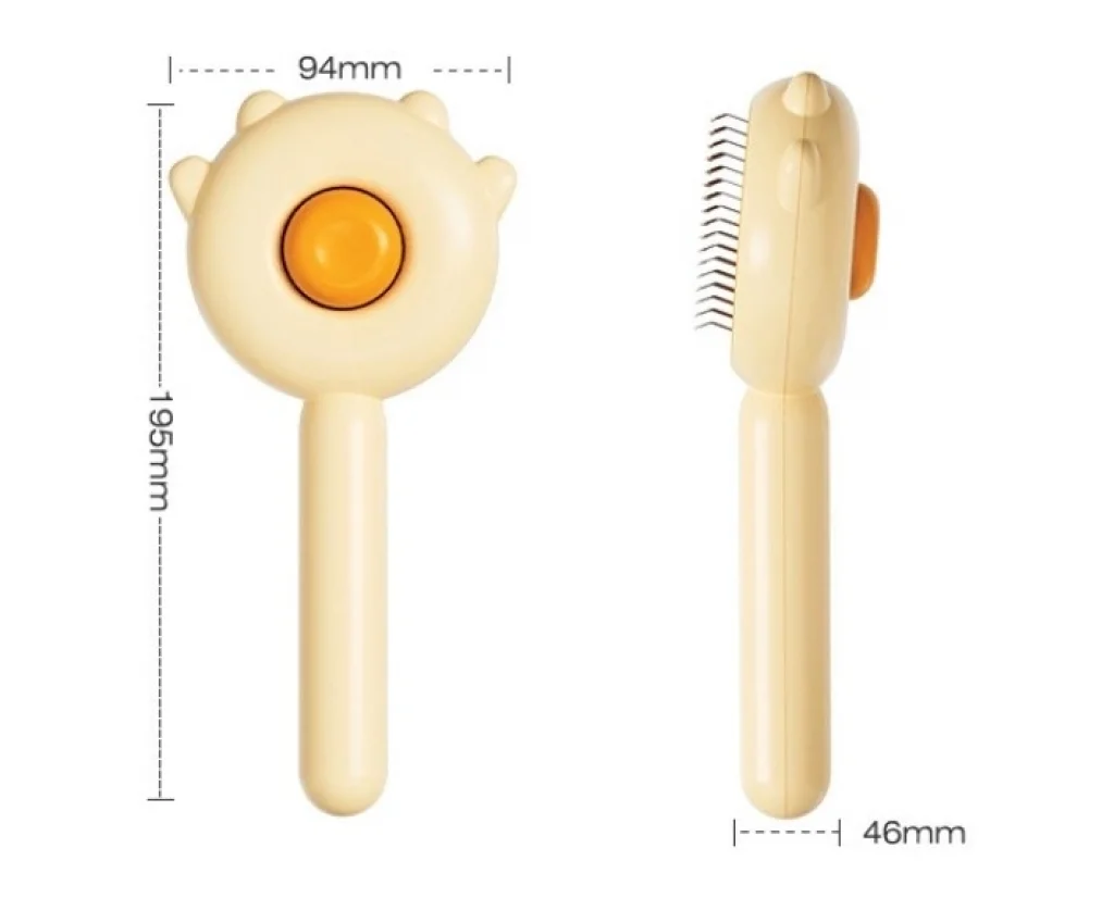 PATİ TASARIMLI OTOMATİK TEMİZLENEN EVCİL HAYVAN TARAĞIÜrün ÖzellikleriPati tasarımlı otomatik temizlenen evcil hayvan tarağı, kedi ve köpeklerin tüy bakımını pratik, hızlı ve konforlu hale getirmek için tasarlanmıştır. Ergonomik sapı sayesinde ele rahat oturur ve tarama sırasında kontrolü artırarak hem evcil hayvanın hem de kullanıcının konforunu ön planda tutar. Tarak arkasında bulunan pratik düğme mekanizması, tarama sırasında toplanan tüylerin saniyeler içinde yüzeye itilmesini sağlar ve tek hamlede temizlenmesine imkân tanır. Bu özellik sayesinde tarak üzerinde biriken tüylerle uğraşmadan hijyenik ve zahmetsiz bir kullanım sunar. Yuvarlatılmış tarak uçları, cilde zarar vermeden nazikçe tarama yak ölü tüylerin, tozun ve kirin etkili şekilde toplanmasına yardımcı olur. Düzenli kullanımda tüy dökülmesini azaltmaya destek olurken, evcil hayvanın tüylerinin daha bakımlı ve parlak görünmesine katkı sağlar. Günlük bakım rutini için uygun olan bu tarak, ev ortamında kolay kullanım sunar ve evcil hayvan sahipleri için vazgeçilmez bir bakım ürünüdür.Paket İçeriği1 adet Pati Tasarımlı Otomatik Temizlenen Evcil Hayvan Tarağı