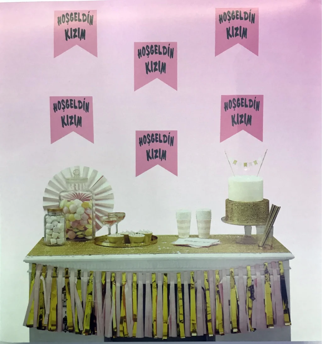 BUĞZ Pembe Üzeri Altın Hoşgeldin Kızım Flama Süs