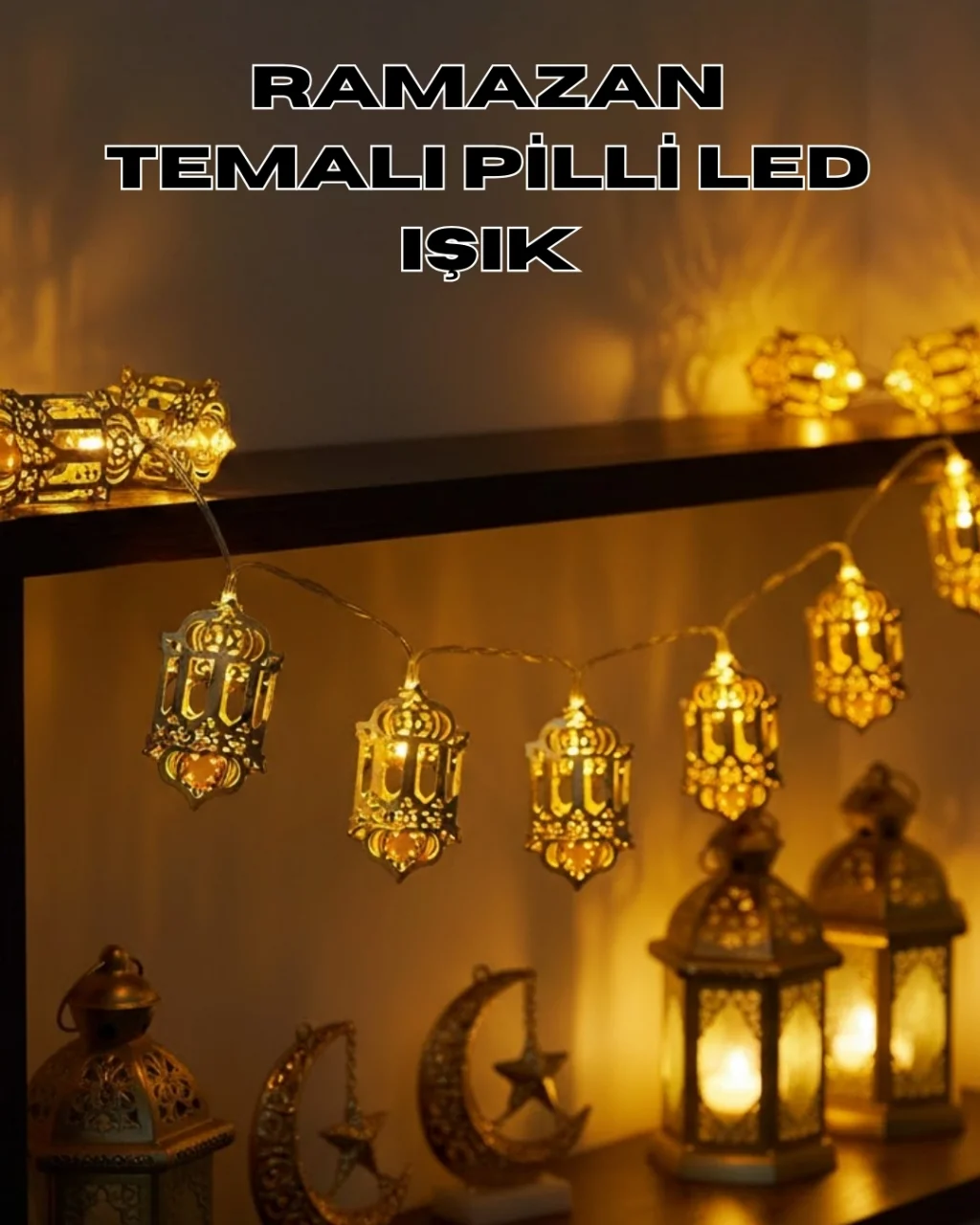 Altın fener figürlü pilli ramazan ışıkları, ev ortamına manevi bir dokunuş katmak isteyenler için estetik ve kullanışlı bir dekoratif üründür. Ramazan ayının ruhunu yansıtan fener tasarımı, LED ışıklarla birleşerek sıcak ve dingin bir aydınlatma sağlar. Özellikle akşam saatlerinde loş ışık sevenler için ideal bir atmosfer oluşturur.Ürünün pilli yapısı, kullanım alanını oldukça genişletir. Elektrik prizine ihtiyaç duyulmaması sayesinde raf, masa, kitaplık, pencere önü veya dresuar gibi alanlarda rahatlıkla kullanılabilir. Kablo görünümü olmadan daha düzenli ve sade bir dekorasyon imkânı sunar. Bu özellik, özellikle ramazan dekorasyonu yaparken büyük kolaylık sağlar.Altın renkli fenerler, dekorasyonda şıklık ve zarafet arayanlar için özenle tasarlanmıştır. Detaylı kesim yapısı sayesinde ışık, fenerin içinden yumuşak bir şekilde yayılır ve göze hoş gelen bir aydınlatma oluşturur. LED ışıkların sıcak tonu, ortamda huzurlu bir atmosfer yaratır.Pilli LED sistemi, düşük enerji tüketimi ile uzun süreli kullanım sunar. Gün boyunca veya akşam saatlerinde uzun süre açık kalsa bile pil performansı verimli şekilde korunur. Bu yönüyle hem ekonomik hem de pratiktir.Ramazan sofralarında masa dekoru olarak, evin salonunda veya misafir odasında tamamlayıcı bir aksesuar olarak tercih edilebilir. Aynı zamanda bayram süslemelerinde de kullanılabilecek çok yönlü bir üründür. Ev dekorasyonuna anlam katan, ramazan ruhunu yansıtan şık bir LED aydınlatma çözümüdür.