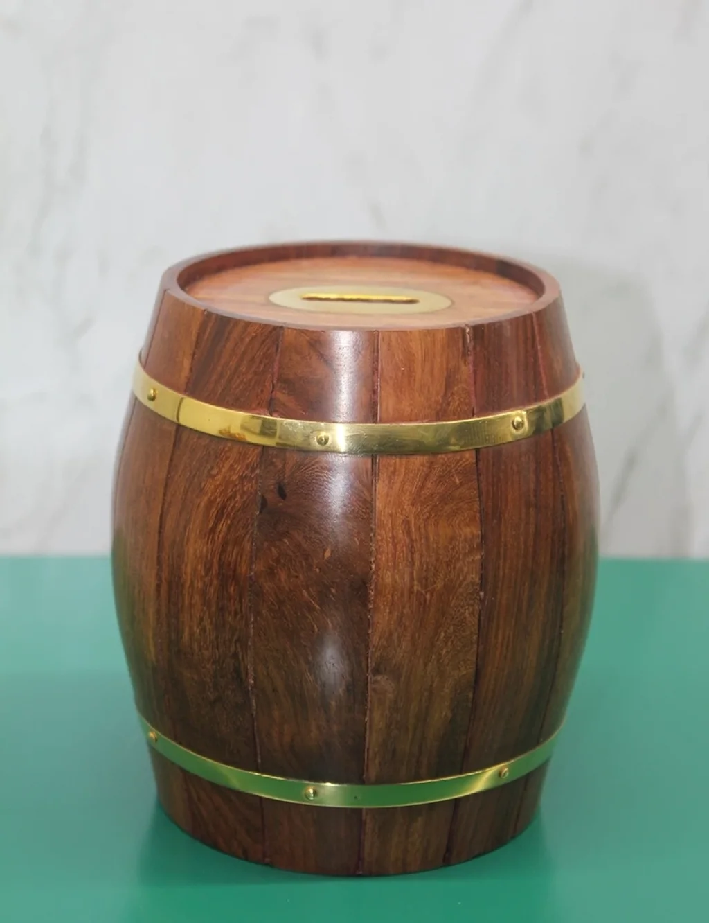 BUĞZ Pirinç Ahşap Fıçı Kumbara 15 Cm Wb538