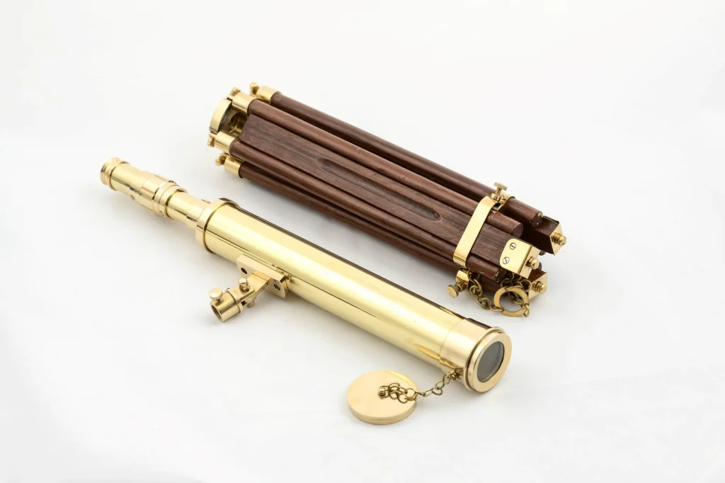 PİRİNÇ AYAKLI TELESKOPÜrün ÖzellikleriPirinç ayaklı teleskop, şık ve nostaljik tasarımıyla hem koleksiyonluk bir obje hem de dekoratif bir aksesuar olarak dikkat çekmektedir. Gövdesi pirinç malzemeden üretilmiş olup, ayakları yüksek kaliteli ahşaptan tasarlanmıştır. Ayarlanabilir yükseklik özelliği sayesinde farklı konumlandırmalar için uygundur. Denizcilik ve keşif konseptine uygun, retro tarzı bir atmosfer yaratmak isteyenler için ideal bir dekor ürünüdür.Paket İçeriği1 Adet Pirinç Ayaklı Teleskop