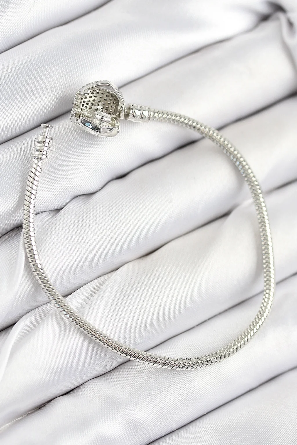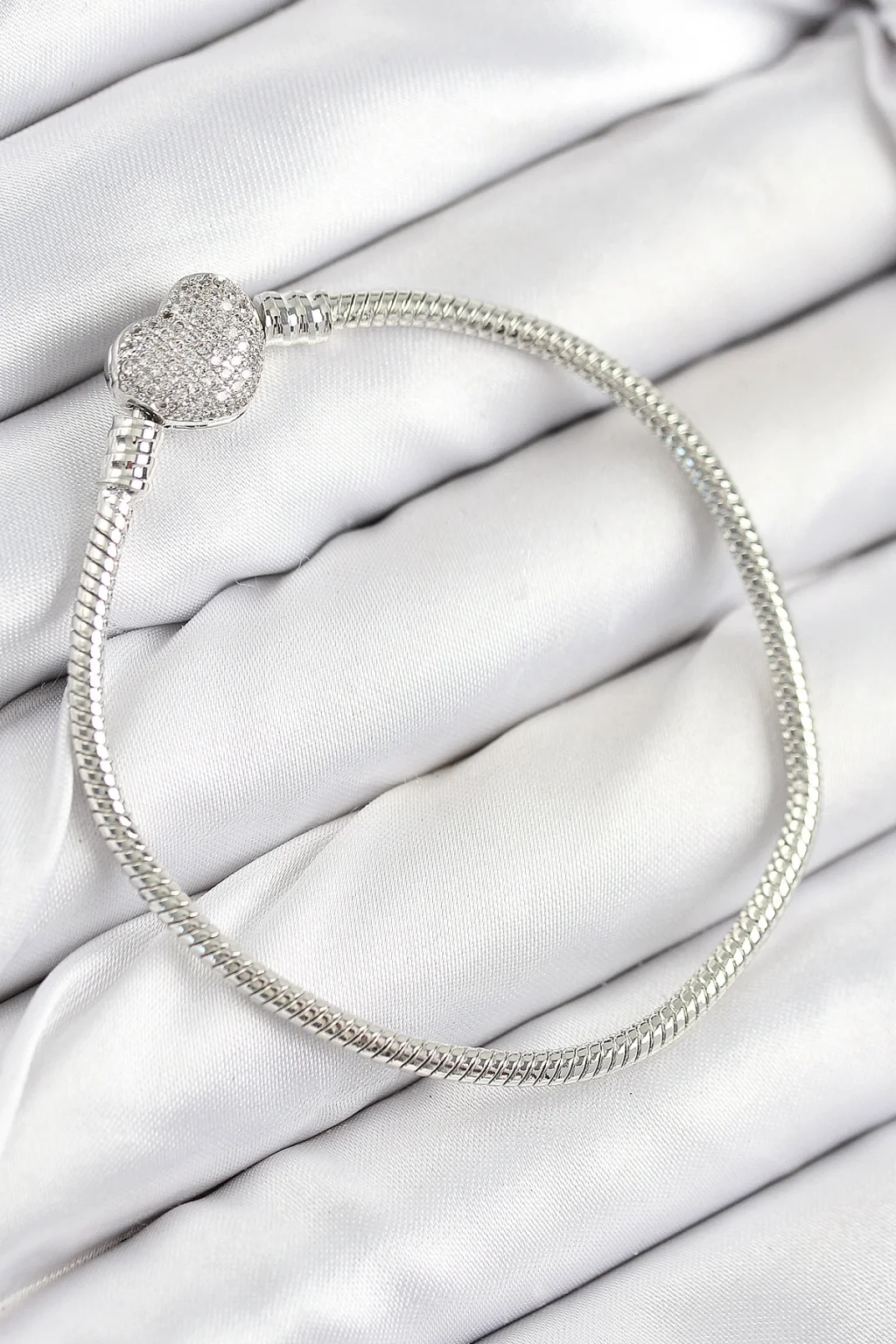 BUĞZ Pirinç Charm Zirkon Taşlı Kalp Model Gümüş Renk Kadın Bileklik