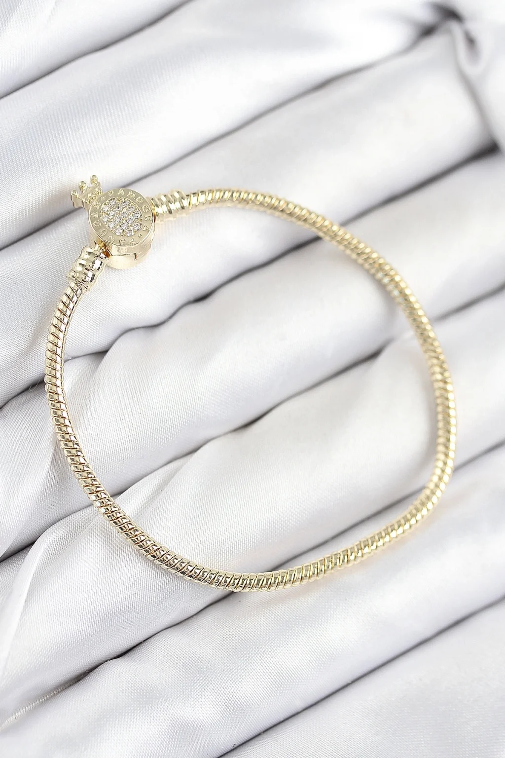 BUĞZ Pirinç Charm Zirkon Taşlı Taç Model Gold Renk Kadın Bileklik
