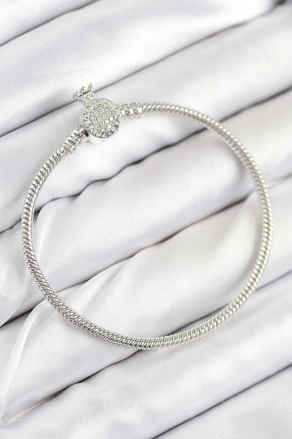 BUĞZ Pirinç Charm Zirkon Taşlı Taç Model Gümüş Renk Kadın Bileklik