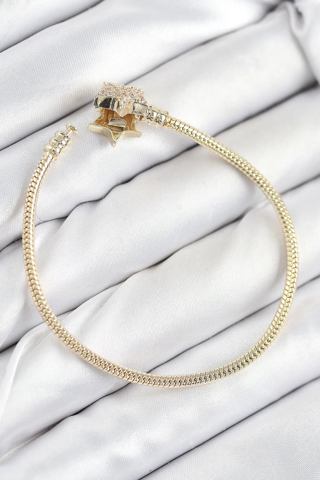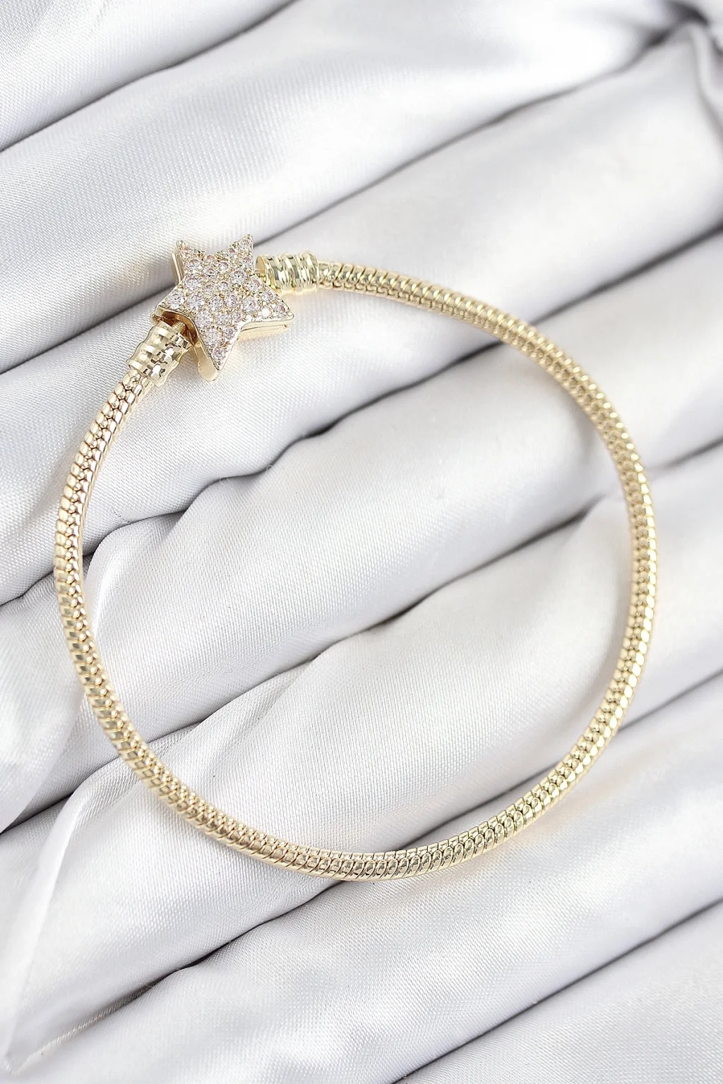 BUĞZ Pirinç Charm Zirkon Taşlı Yıldız Model Gold Renk Kadın Bileklik