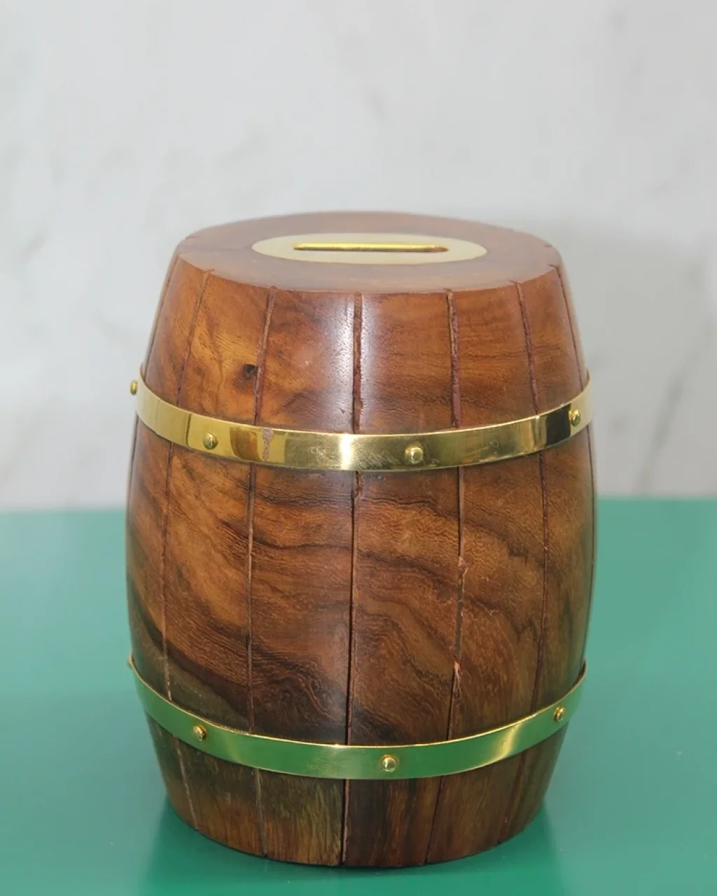 PİRİNÇ DETAYLI FICI KUMBARA MODEL 4Ürün ÖzellikleriPirinç Detaylı Fıçı Kumbara Model 4, 12x9 cm boyutundaki kompakt yapısıyla dikkat çeker. Zarif pirinç detayları ve kaliteli işçiliği ile biriktirme işlevinin yanı sıra, dekoratif bir obje olarak da kullanıma uygundur. Dayanıklı yapısı ve estetik tasarımıyla hem fonksiyonel hem de şık bir seçenek sunar.Paket İçeriği1 Adet Pirinç Detaylı Fıçı Kumbara