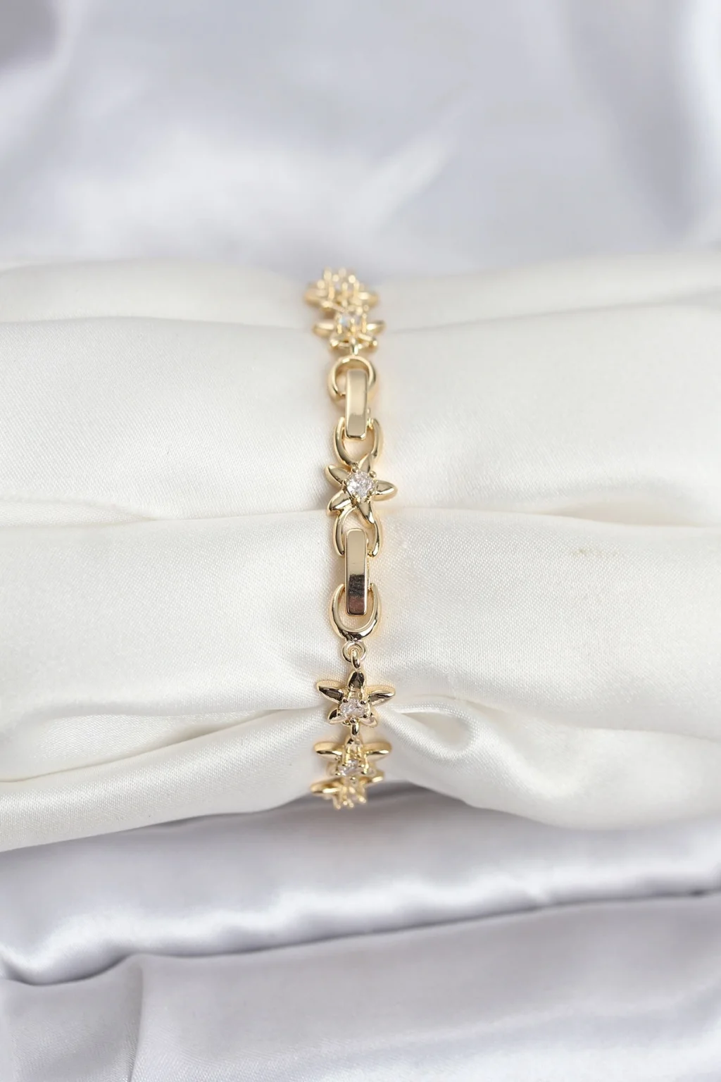 BUĞZ Pirinç Gold Renk VIP Seri Sıralı Taşlı Yıldız Model Zirkon Taşlı Kadın Bileklik
